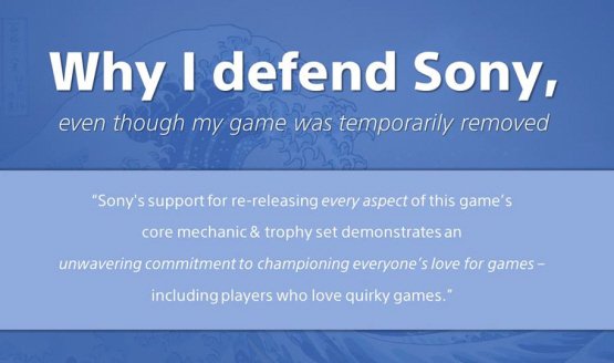 In a Facebook post defending Sony, the developer of ★★★★★ 1000 Top Rated praised how much Sony cares about indie developers and how they’re “100% committed to supporting our gameplay visions (and trophy sets),” regardless of what that vision is.