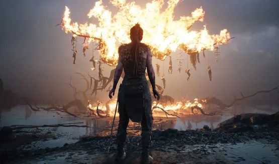“It is important for us to portray the physical, emotional, and mental trials of her quest in both the character model and the representation of her reality. An example of this is the voices that Senua hears in the scene. These voices have been recorded binaurally which means that if you listen to them with headphones on they will sound as if they are in the 3D space around you.”