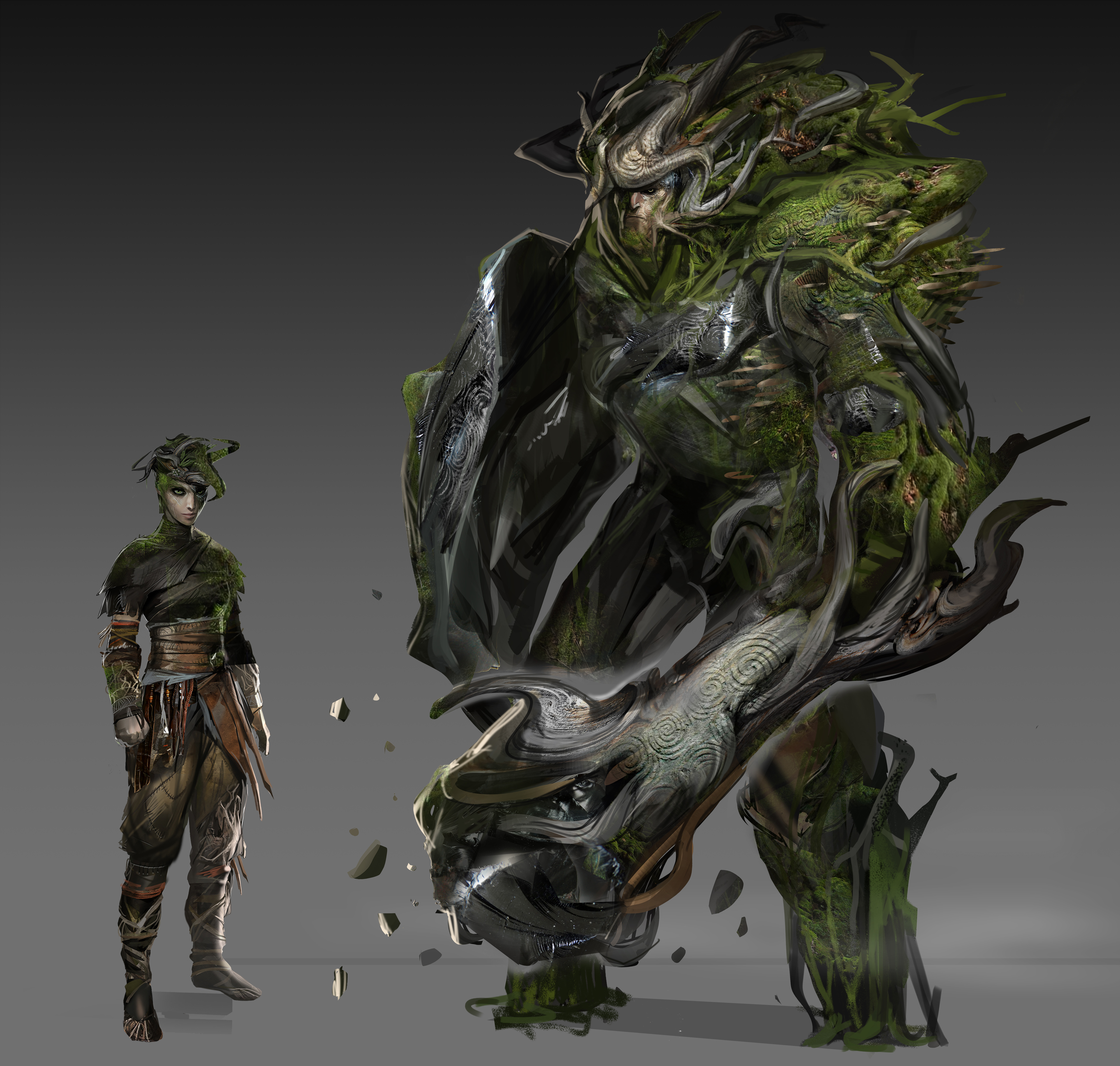 GreedFall features a setting inspired by Baroque art from 17th century Europe. Settlers have descended upon a mystical island. One that’s protected by numerous species from nimble hominid-like species to massive guardian beasts. The meeting of vastly different cultures results in high tensions, something shown quickly in just a few cinematics. It’s immediately obvious that the world of GreedFall is a colorful one, as we were presented with a lush forest, with bright green hues and iridescent foliage set as the backdrop to violent war. Always nice to see a vibrant palette.