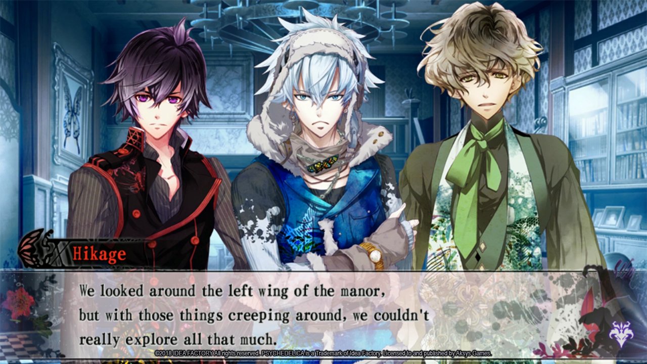Psychedelica of the Black Butterfly’s story involves a girl waking up in a mysterious mansion without any memory of how she got there. She also doesn’t remember her name, or who she was in the past. Before she can compose herself to what’s happening, she is forced to run away for her life as a grotesque monster suddenly attacks her. Players then need to follow the black butterflies as the choices they make unlock numerous story paths. These paths lead the player into exploring the mansion filled with fascinating characters, and a plethora of surprising endings. A certain mini-game lets players unlock additional plot elements.