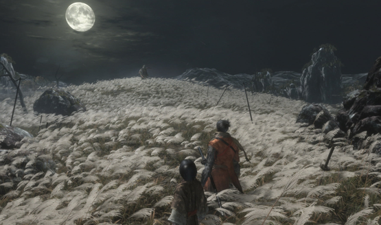 One of the primary functions of the Shinobi prosthetic is the grappling hook, which allows players to quickly reach otherwise inaccessible areas. Sekiro is far more vertical than From’s previous fare. Verticality–including scaling objects in the environment and simply jumping–plays a role in both traversal and combat, opening up a lot of options for players. Options are something that were never really present in the Souls games. Defeating enemies traditionally relied on a single learned pattern that had to be executed without flaw. While Sekiro remains extremely difficult, multiple paths are open to the player in determining how they want to approach an encounter. It’s a lot like Assassin’s Creed in that way, as the ninja perches on roofs and walls, waiting for the perfect opportunity to slip in and stealthily strike.