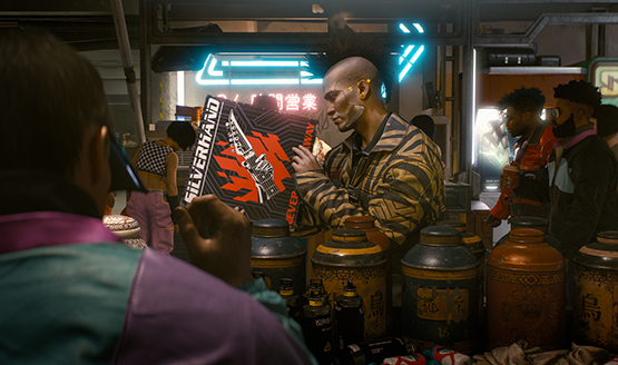 Additional customization and upgrades are available for V in the form of cybernetic enhancements. V is a cyborg after all, just like most of the people in Night City. These enhancements offer gameplay abilities, and one of the first objectives we completed in the early demonstration was getting a couple of upgrades from the local ripperdoc. Our hand was enahnced for increased bullet damage and a brand new eye got installed so that we could scan the environment around us. Both of these seemed like they fit into some kind of main story (assuming the final game retains the same narrative structure as the demo), but there are certain to be a number of optional enhancements beyond these two.