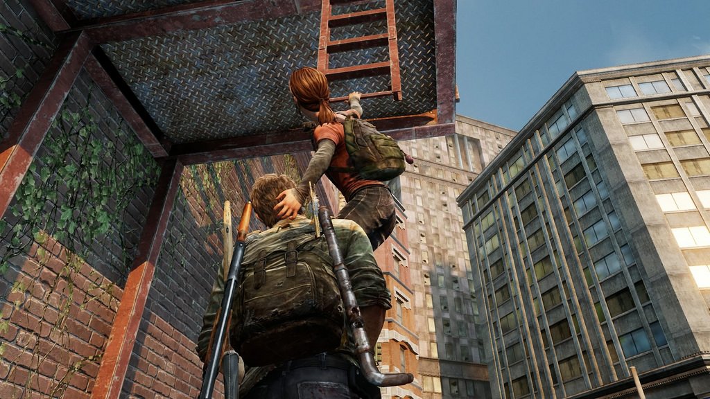 When the player first realizes that Ellie cannot swim in The Last Of Us, it quickly becomes clear that, like many games, the player must solve puzzles in order to help their companion traverse impassable spaces. From Ico‘s Yorda, to Atreus in the most recent God of War, many games base their puzzles on the incapability of an essential character to progress further without solving something. What differentiates The Last of Us, and by extension Uncharted, from other puzzle games is how much sense the puzzles make. Due to the linearity of The Last of Us, Joel is confined to a certain part of the map until both he and Ellie can move forward to the next part. The part in question clearly contains the key to progression, so the map must be scrutinized until something alterable is discovered, which can set in motion a chain of events ending in the ultimate progression forward. The player will eventually find some debris, which resembles a sort of raft. Ellie can use it to stay buoyant and sort of paddle across narrow widths of water, allowing for her to move forward with Joel. In some cases, it is actually Ellie who must help Joel progress, as her small size allows for her to be hoisted up onto tall platforms. From these platforms, she can drop a rope or a ladder, which Joel can then climb. There is no compromise of realism at any given point in The Last of Us or Uncharted with respect to environmental puzzles. Thus the environment itself gains absolute significance as a container of objects that can potentially be manipulated.