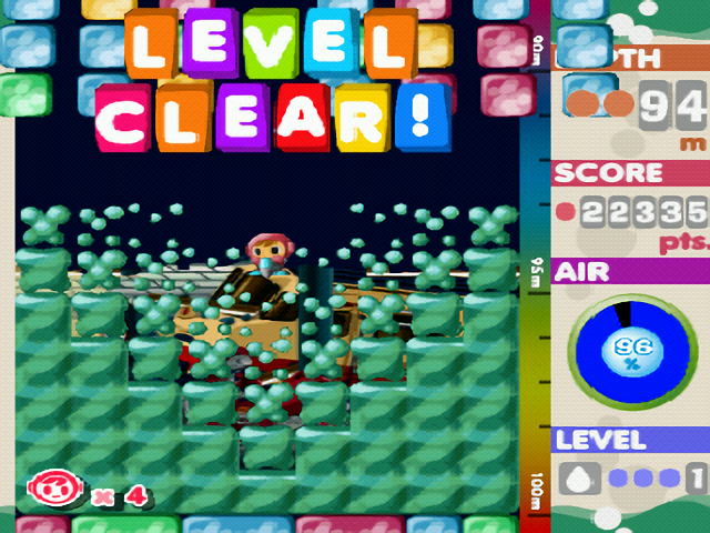 Taking more after his father than his mother, Susumu is a Driller. He goes around the world, drilling into various blocks in the ground so he can go deeper and deeper. The goal is to get as far as you can with your skills before Susumu runs out of air. You know, the usual puzzle sort of thing.