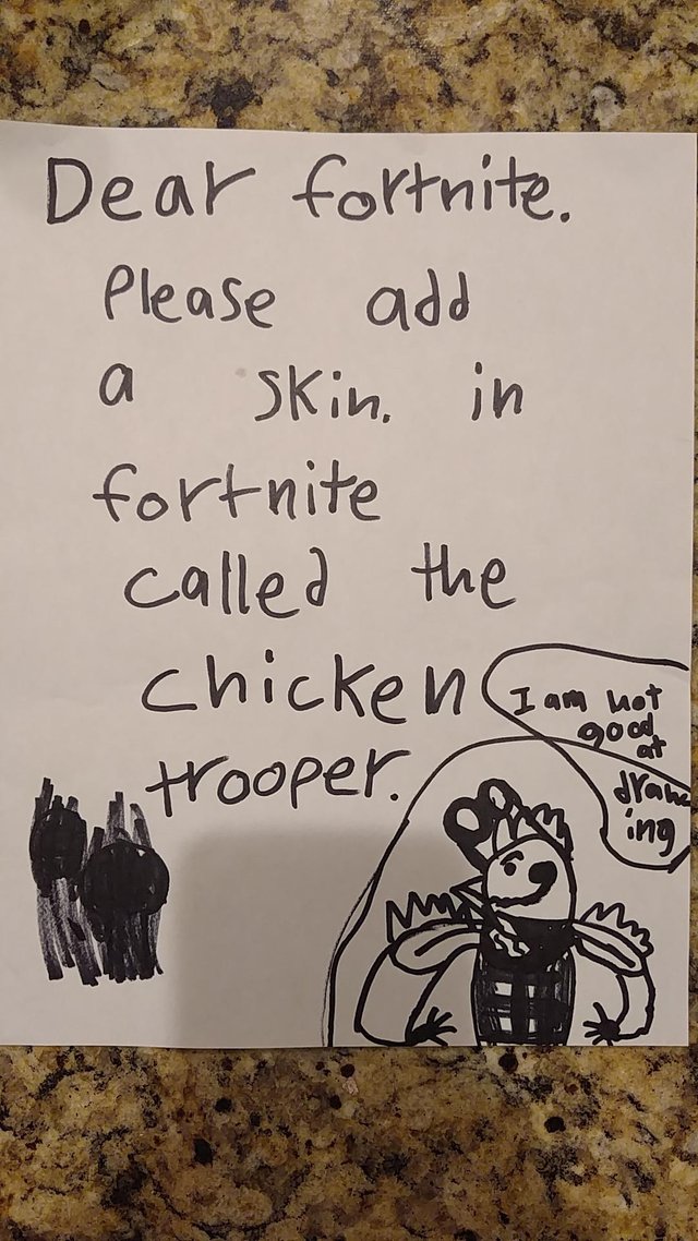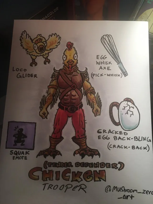 This saga began in September when Reddit user “tfoust10” posted his son’s design (then known as the “Chicken Trooper”) to the Fortnite subreddit.