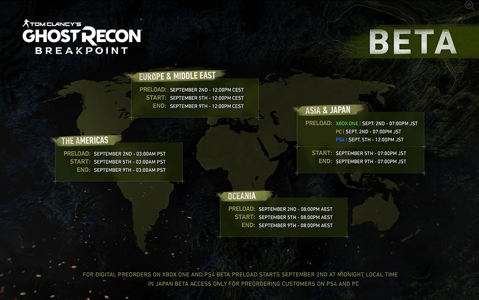 Those in the Americas will be able to preload the beta starting on September 2nd at 3am PST, while those in Europe can begin downloading that same day at 12pm CEST. The beta will run from September 5th to September 9th. A handy breakdown of all regions’ start and end times can be found below: