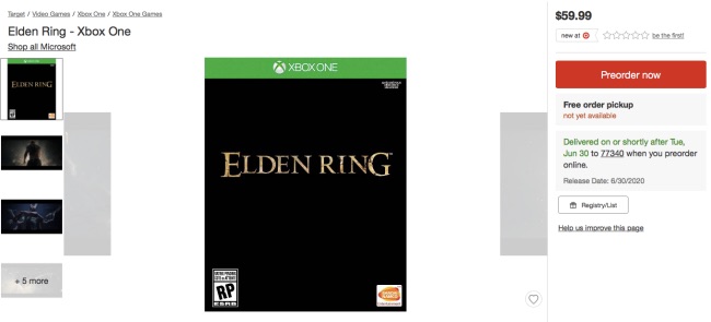 Elden Ring’s listing recently landed on Target’s online storefront. Check out a screenshot of the game as it appears on Target’s website at the time of writing: