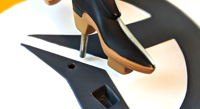 The base is heavy and sturdy, something you aren’t likely to easily accidentally move or knock off a shelf. Mercy fits into the base via two posts on one of her feet, one is a thicker post and the other is a thinner one to stabilize and give it another point of contact. This portion of the assembly is a snug fit so the statue doesn’t wobble at all. I would have liked to see a third point of contact in her other foot, but that’s more for my own peace of mind than an absolute necessity. Her hand and staff fit into her arm via a discreet socket that isn’t visible once it’s slotted in. It’s held in place via a magnet, but the fit isn’t as tight as the foot, so there’s a very slight wobble with this part. Ideally, you won’t be moving the statue around though, so this is really a non-issue.