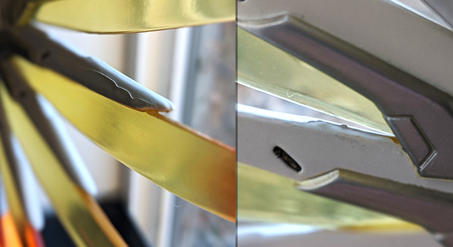 A look at some of the molding imperfections on the wings, as well as the translucent plastic parts.