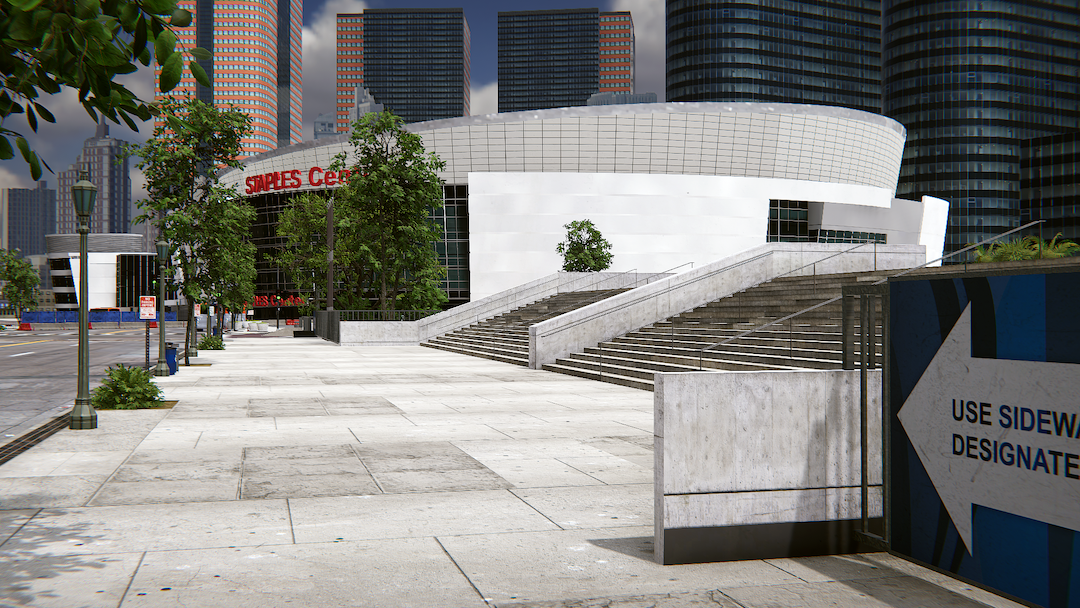 Easy Day is putting together some incredible levels full of classic skating environments. This particular preview focused on the new downtown LA area—which was nice considering I won’t be headed there myself for E3 this year. As the camera swooped across the plaza between the Staples Center and the LA Convention Center, I was immediately taken back. It’s not necessarily recreated with a 1:1 accuracy (as I mentioned, they are trying to balance natural environments with making sure it’s fun to play in-game), but there was no mistaking multiple iconic areas, environments, and structures from downtown LA. Being given the freedom to set a starting pin virtually anywhere in the environment means you can take to trying out some of the most standout skate spots from a city crucial to skate culture.