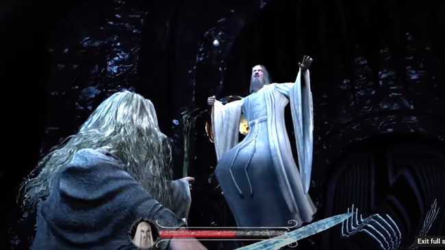 Things didn’t go so well. Burton talks about how the project quickly got out of hand, with four full levels and five additional tech demos being constructed, including levels of full-on stealth gameplay that feature Frodo sneaking through a rainy forest and avoiding the Orc hoard. One of the most intriguing scenes is a spell-slinging battle between Gandalf and Saruman in which the player goes in and out of first and third-person, countering spells and fighting in a cinematic battle. There’s also a fight between Gandalf and the Balrog (no, not Barlog), Sam and Frodo avoiding the ringwraiths, and Aragorn in combat.