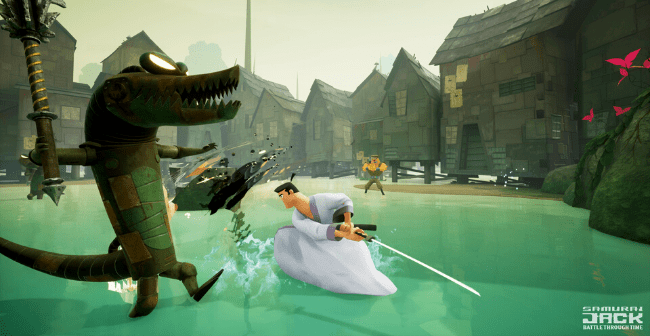 Featuring the original voice actors from the cult-classic 2001 television series, Samurai Jack: Battle Through Time is an untold story that ties into the show’s series finale. “Visit classic worlds and moments from your favorite episodes. Travel to a dark future to free mankind. Dive into the past to face off against diabolical monsters. Seek your fate as you travel across space and time,” says developer Soleil. This quest includes a dozen different weapons, each with their own skill sets. If the screenshots are to be believed then I have to assume that one of those skills involves the aforementioned gator-choppin’.
