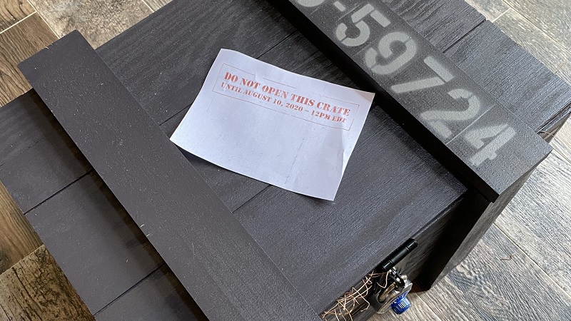 “The package, which was a crate with a serial number on it and a lock, says that we cannot open the package until Monday, August 10 at 12 PM EDT,” wrote Charlie INTEL. “We must wait till Monday, August 10 at 12 PM ET to send a text message to a number Activision provided to get the unlock code for the actual box to see what’s inside.”