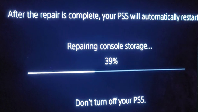 The issue is exacerbated by a black screen that comes up after repairing the external hard drive. To bypass this screen, I needed to manually push the power button on the console to put the PS5 into rest mode, and then wake it back up again. While I’ve had these problems come up a few times before, today’s issues sent my PS5 into a pattern of crashes, powering off the console entirely just a few seconds after booting it up each time. I was honestly panicked, thinking my console was bricked into a crash loop, before discovering that the external hard drive was apparently causing the problem.