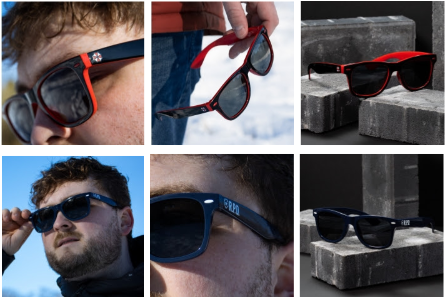 Who do you side with, the evil Umbrella Corporation or the members of the R.P.D.? Sport the red-framed Umbrella sunglasses or the black R.P.D. sunglasses to show your support.