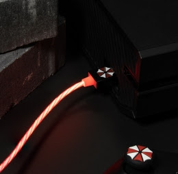A bit of an odd pairing of products, but when has Umbrella ever taken the conventional route? This pack contains a nifty light-up USB-C cable featuring the Umbrella logo, as well as a pair of Umbrella logo thumb grips that should be compatible with most standard current-gen controllers.