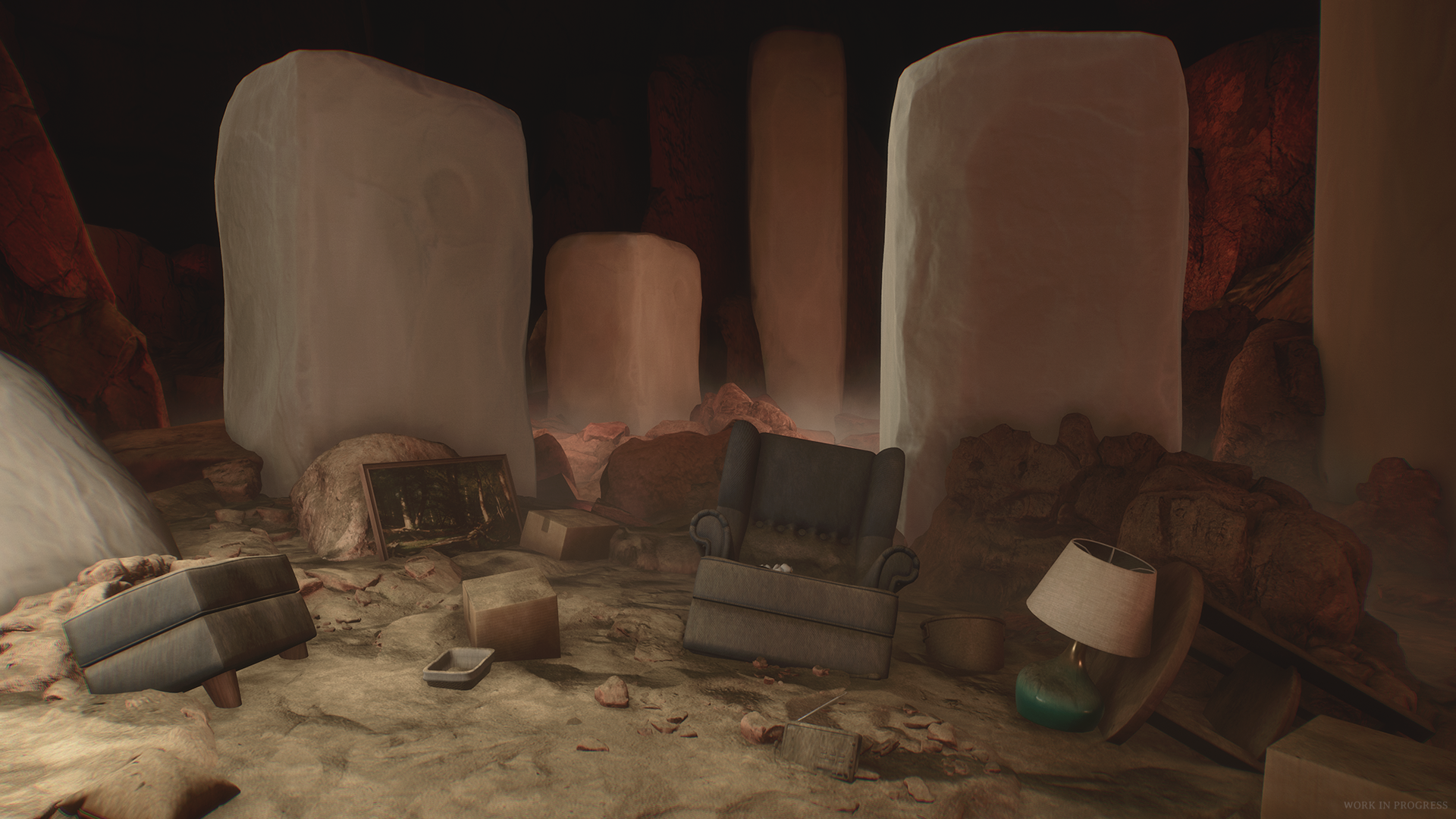 While the last trailer didn’t give us much to go off of, the new announcement gives us more details about the Luto’s potential threats. Besides anxiety and depression being key factors, a cloaked figure looks to be haunting the protagonist in his own home. The dimly-lit corridors are also vividly reminiscent of Hideo Kojima’s shuttered P.T. demo. There’s also a newly revealed desert environment, as well as some interesting architecture and paintings that could hint at something more ancient.