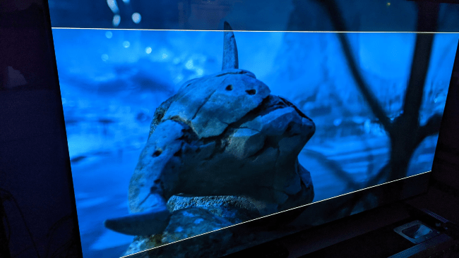 The image seen isn’t familiar to anyone; no one can seem to place it within Returnal’s current biomes and environments. Showing what appears to be a rocky formation that looks like a horned helmet or head, the picture is an off-screen image taken on a TV that is sitting on gear crates—the kind often used for big events, like say, maybe The Game Awards. The figure that stands as the subject of the image looks like it could possibly be one of the statues of the alien life forms that litter Atropos, though there does appear to be something a bit different about it, not to mention the unfamiliar environment it seems to be in.