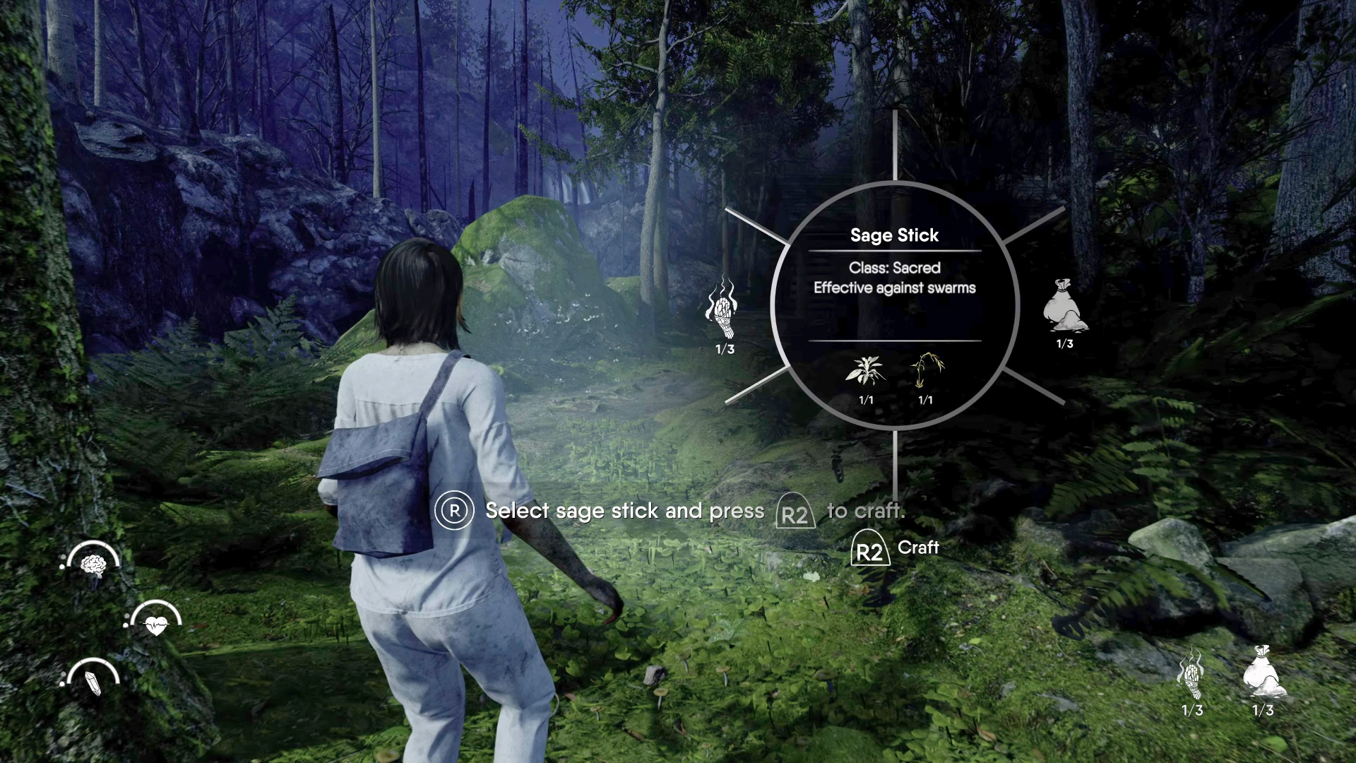 Since the demo took place after what would normally have been The Chant’s tutorial, I was thrust into spiritual warfare without much preparation. This was an odd choice, but perhaps the story is so tightly woven that it will make more sense once the full game is released. Most enemies appear to be some sort of sentient plant life, though there were also giant venomous toads to contend with towards the end of the demo. Also, although Jess is seemingly an average woman, she does have some tools at her disposal. She can use sage sticks and craft other weapons to attack her enemies in various ways, though some cannot be defeated and are best avoided.