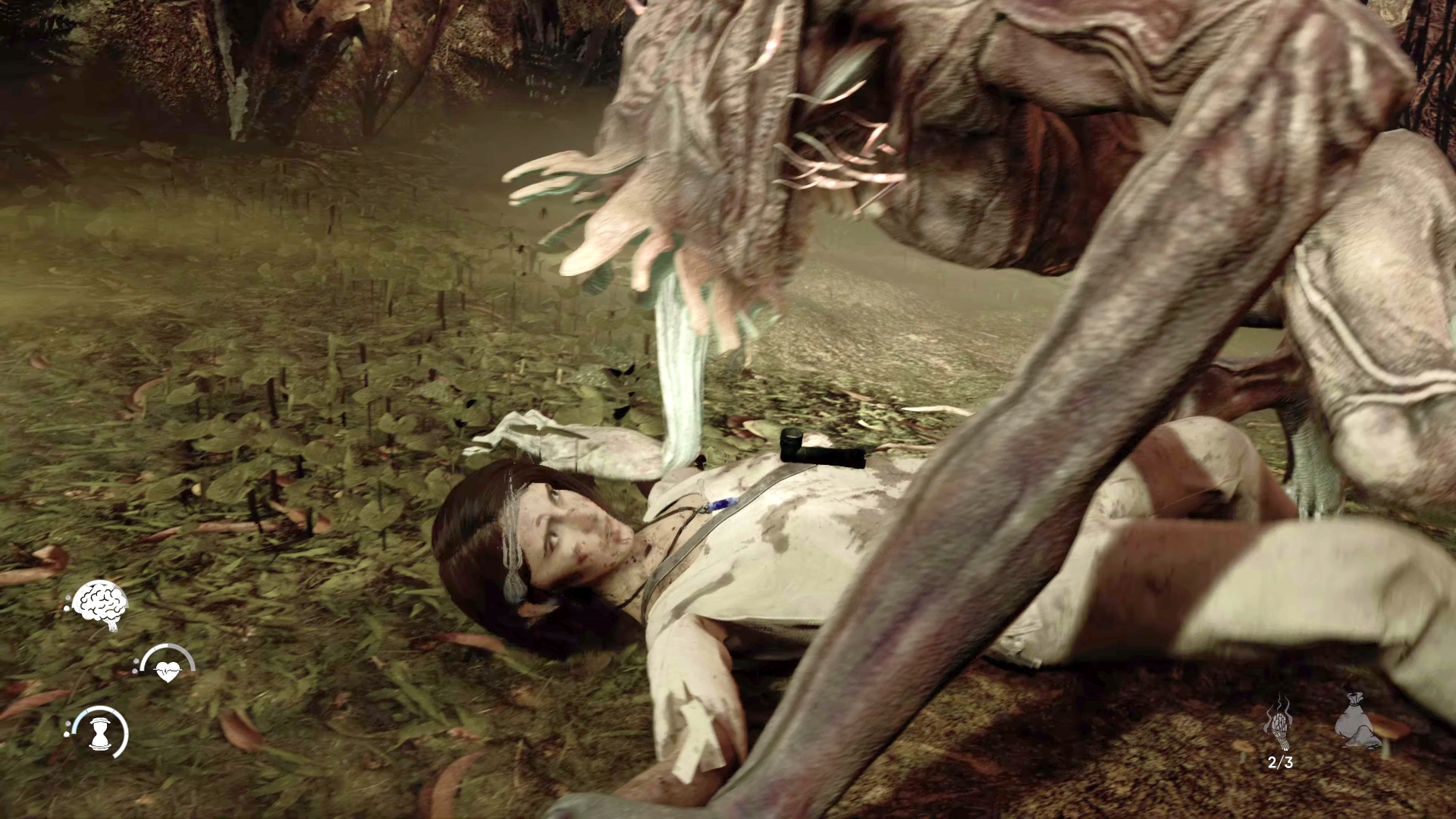 As The Chant is at least in part a psychological thriller, one enemy in particular appeared to manifest some of Jess’ fears – it was made entirely of flies, which she hates, and shouted insecurities she seemed to hold, thus messing with her mind as opposed to her body. This enemy sauntered along towards Jess, and could be temporarily stunned with a smudge stick, but ultimately had to be run away from, at least for now. Surprisingly, this enemy could even open doors, only finally being warded off once a certain marker was reached.