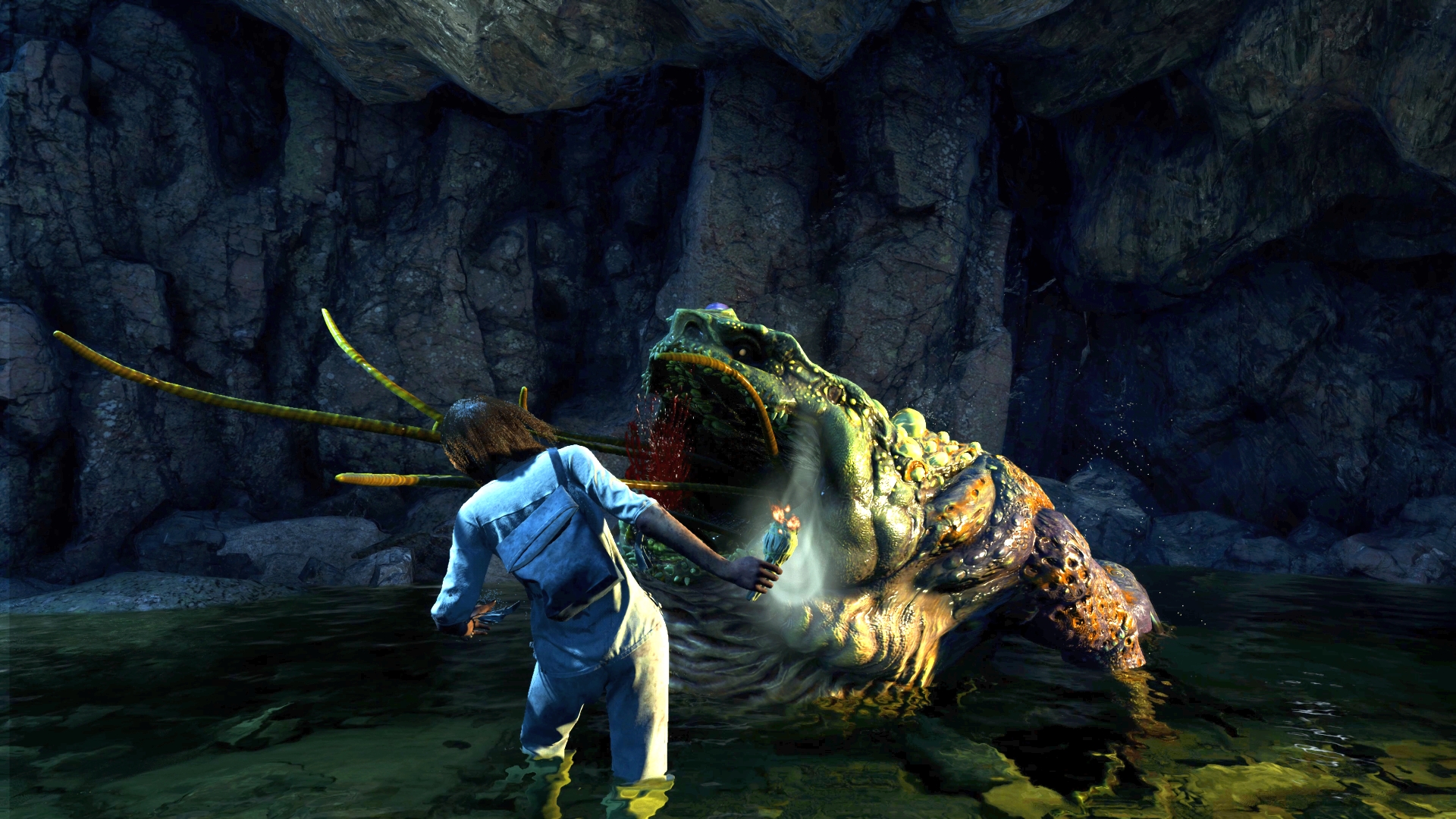 There seemed to be a heavy focus on high production values, as is evident in character modeling. A lot of work seems to have gone into skin textures, for instance. I noticed that one character’s physical stress was accentuated by him being drenched with sweat, beads of which collected at various spots on his face in a convincing manner. Main character Jess became dirty as our demo progressed on, something her skin acutely showed with various patches of dirt and other substances caked on the various crevices that lined her face. With a tightly-controlled environment such as an island and mines, perhaps such a high production value can be carried throughout the adventure.