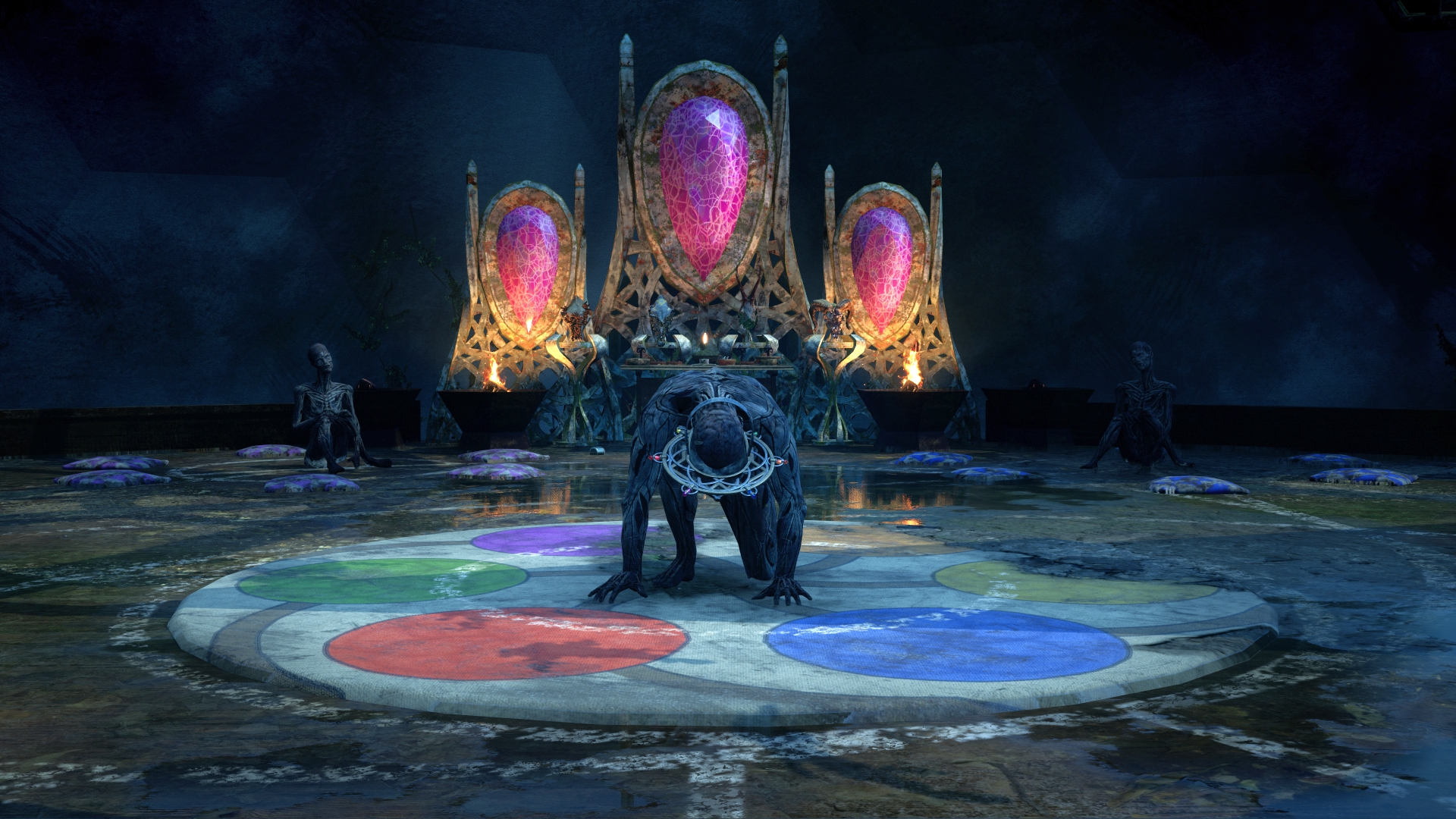 Behind another door, Brass Token has taken the more traditional development cost-saving route of building out their own motion-capture and recording booth within their studio. The room featured large chunks of sound padding adorning the walls, and a couple of stations where players could isolate themselves as they test out the game. It was at one of these stations that I was able to get my first sampling of The Chant.