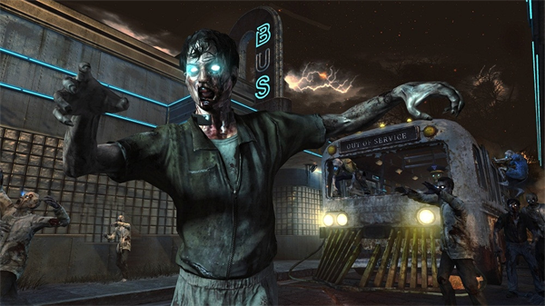 Since this is a Treyarch Call of Duty game, it would not be complete without Zombies. As with Call of Duty: World at War and Call of Duty: Black Ops, the Zombies mode is a co-operative mode where you party up with up to 3 other players and try to stay alive against endless waves of undead. In the first two games, these missions unfolded in a single area, often with hidden areas that could be opened up with the points earned by killing zombies. While this same style returns with the Zombies Survival mode, Black Ops 2 adds 2 more ways to play Zombies. In Tranzit, you start out in a seemingly similar scenario where you’re stuck with just a pistol and have to fight off waves of zombies. But eventually you’ll find that there is a bus outside. Hopping on the bus will take you to other areas of this new open world consisting of several different areas. You will find work benches and “parts” scattered around the world that you can use to craft some interesting gear or beef up your bus. If you’re feeling brave you can even venture into the fog between the main areas in Tranzit where you will probably just find a quicker death. Tranzit is another good example of Treyarch not being afraid to mix things up.
