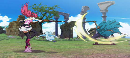 Once you step past the story and into the combat, you start to realize that the lazy approach to the story transfers over to the combat as well. It is thoroughly boring and tedious, with no real break in its monotonous nature. In the combat you play as either Towa or Toki, with the characters changing every time you level up. The problem is, both of these two are carbon copies of each other, with the only difference being hair color. They both possess the same weapons and a lot of the same spells. Battles boil down to watching the enemy attack pattern, dodging when need be, and then attacking at first chance. One enemy at a time will appear on the screen and when you defeat him another will then pop up. Drake (Zack) can help out during battles with heals but this happening is extremely rare. Combos can also be chained together and characters can perform chemistry attacks with Drake.