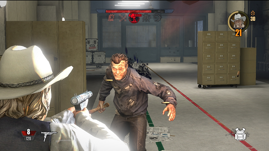 Taking the characters, and likely locations, from the movie is about as far as they go with the tie-in. Once you select Roy or Nick (the only difference is the cowboy hat), you simply run around one of seven different stages for five waves shooting the shit out of 130+ Deados that rush you from all directions with guns and melee weapons (one is a plunger). No cinematic progression, no narrative anywhere outside of the opening cinematic that explains the basic premise, no reason to really be playing this game. Where have I seen this basic formula before….? That’s it! Remember God Mode? I did a review for it a few months ago? R.I.P.D.: The Game is essentially God Mode stripped down and reskinned with licensed content, and there’s a good excuse if you’re a fan of excuses. It’s made by the same studio.