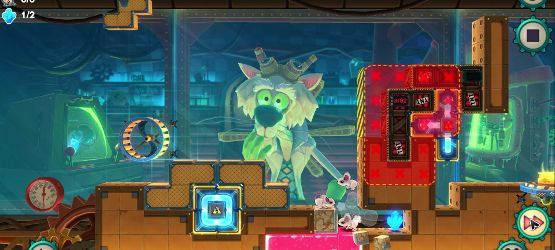 MouseCraft is an interesting mash up of Tetris and Lemmings, where you guide three mousy test subjects across increasingly treacherous terrain by dropping Tetromino blocks to reach their cheesy destination. As the game progresses, the puzzles get more and more difficult with obstacles like robotic rats that kill your mice, water that can drown them if they stay submerged for too long, and acid that will kill them instantly. Falling from too high of a height will kill your mice as well, so your block placement has to balance mouse safety and shard acquisition.