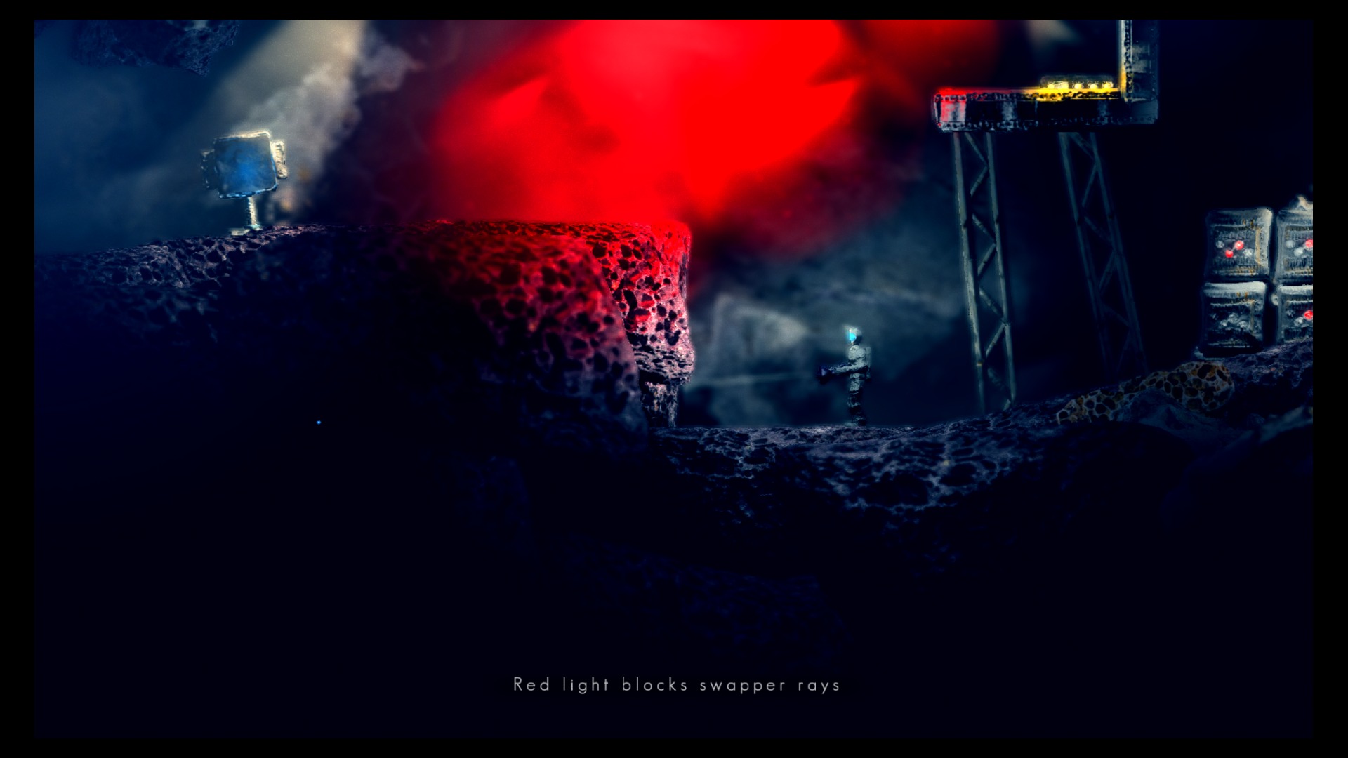 The puzzles begin to include things such as colored lights that can block the effects of your Swapper and gravity shifts that throw your perception of solutions into disarray. All the while, the thought provoking puzzles continue to evoke further inquisition into the questions of existentialism and what it truly means to “be.” Not far into the game I was so far removed from my original body by swapping my consciousness into my clones that I began to wonder if I was really me anymore. I had long ago left the original ‘me’ behind, and had since sacrificed many more versions of myself in interest of my own advancement. In Portal, GLaDOS was the sadist. In The Swapper, that role went to me as the player. Am I a monster? Was this murder? Were these all lifeless clones, were they actually human beings, or worse, were they actually me?