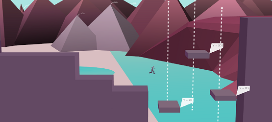Metrico’s charts and infographics that make up the platforms of the world are all based on input from the player, meaning that there may be a high ledge, with a piece of a graph that says zero out of four. Experimenting with the controls may reveal that jumping activates this elevator, so we hop on and jump four times to raise it up and reach the higher platform. This is a very basic example of the type of puzzle that you’ll find in Metrico, with many puzzles requiring the coordination of multiple inputs and parts of the infographic to fully make your way through. Being in the air may cause the door at the end of the puzzle to begin closing, so you will want to navigate that particular area while avoiding being in the air if possible. Perhaps death is what makes that platform move a little closer to you. There is a vast array of input possibilities that continue to grow over the course of the games six levels, and experimentation will be required to find out what exactly makes each puzzle tick.