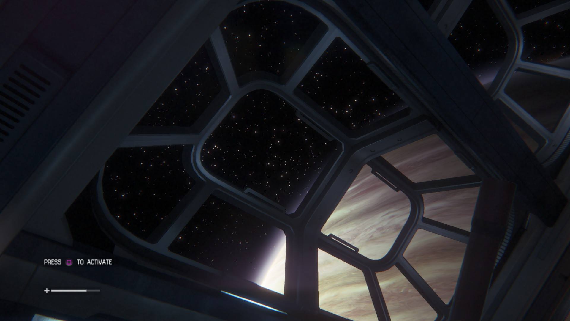 Do not play this game if you don’t like punishment. You can pick the “Easy” mode of the game, but don’t expect it to help a whole lot. Between constantly monitoring your motion tracker, waiting for what feels like ages to figure out the Xenomorph’s path, and even having to hold your breath, if you forget to do any of these things you shouldn’t expect to live very long. In fact, if you have the PlayStation Camera hooked up to your PS4, any loud noise uttered by you or someone else watching you play can alert an enemy to your location. This is a pretty cool feature that adds to the immersion of Isolation. Head-tracking is also an option with the camera connected by holding L1, and is fairly accurate (though offers no enhancement compared to just using the left analog stick).