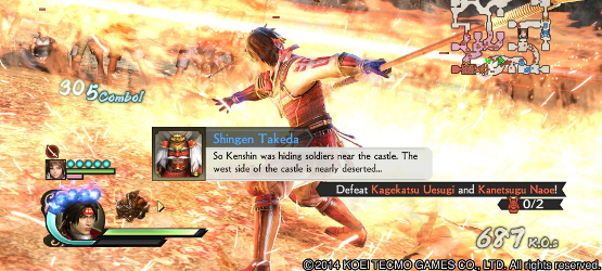 Most missions consist of killing thousands of enemies while eliminating certain officers as it pertains to the events unfolding before you. Because the entire game is strictly in Japanese with English subtitles, you can spend a fair amount of time reading subtitles instead of focusing on the action. This isn’t actually that big of a problem unless you are fighting officers, and because the game will interrupt your fighting whenever a new objective is encountered, with new helpful arrows that give you and your partner the shortest path to take in order to reach it. This is a helpful feature to decrease mission completion times. Just like other entries before it, combat can feel repetitive, but only if you allow it to become so. You can feel incredibly powerful as you change up your combos and take out waves of enemies and their more challenging officers, but only if you learn to vary your combos. I’ll often find that I forget to utilize my special attack, the R1 button, which can unlock a variety of new moves temporarily, or produce character-specific effects such as lay energy bombs or launch fireballs.