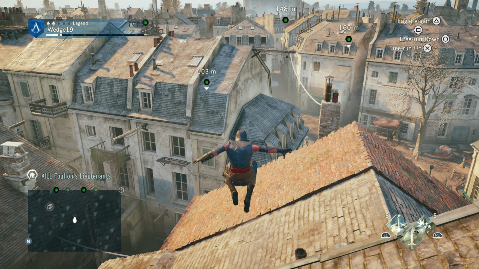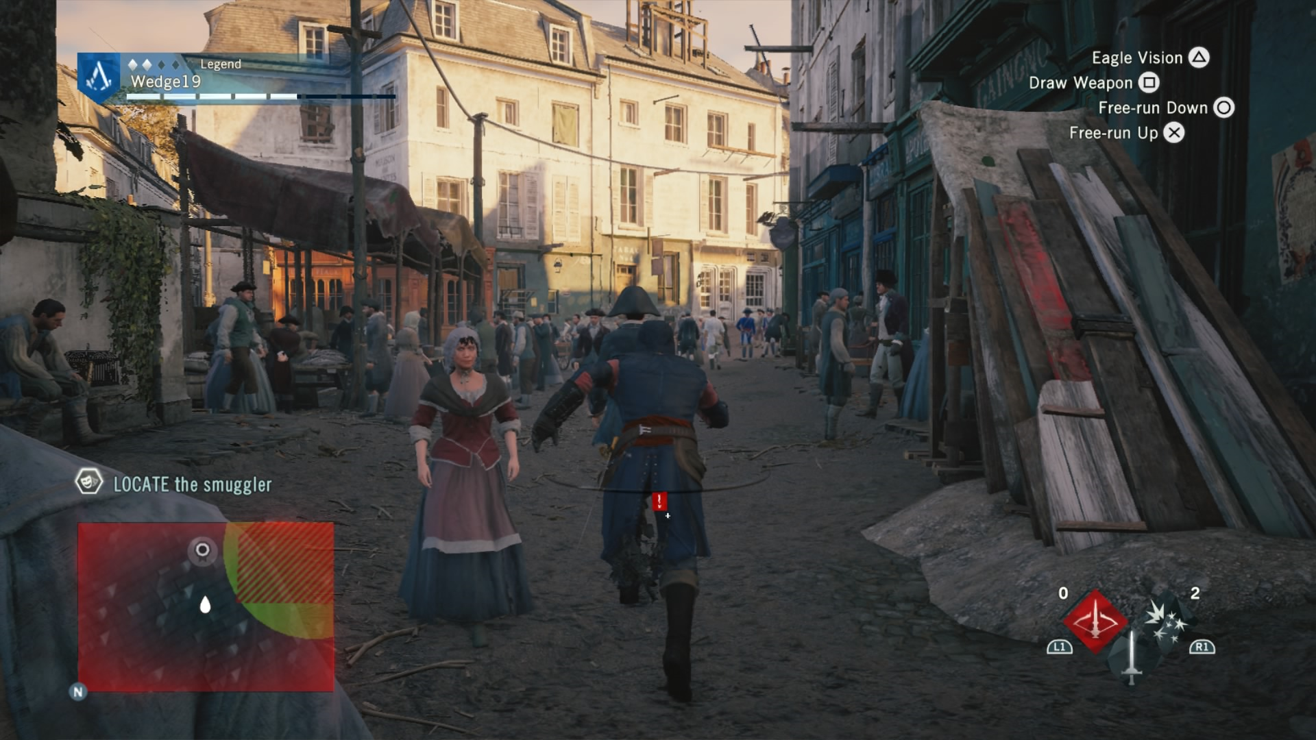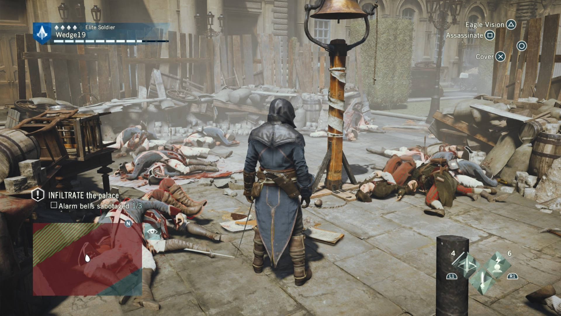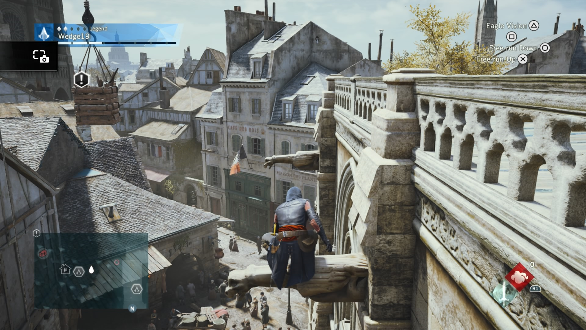 To combat this difficulty progression, Arno can be fully upgraded by buying or earning new gear, from weapons, to his hood, and even down to his pants. That’s right. Unity has customizable Assassin pants. Each of these pieces of gear give Arno a different look and different increasing stats, depending on if you prefer to focus on health for brute force, or stealth for the silent approach. If you are going for stealth, there is also a dedicated stealth button in addition to a cover system to allow Arno to bypass fights and take out enemies with a reticent hidden blade in the shadows. This seemingly basic addition drastically changes the way that Unity can be played, and allows for Arno to feel more like a true Assassin.