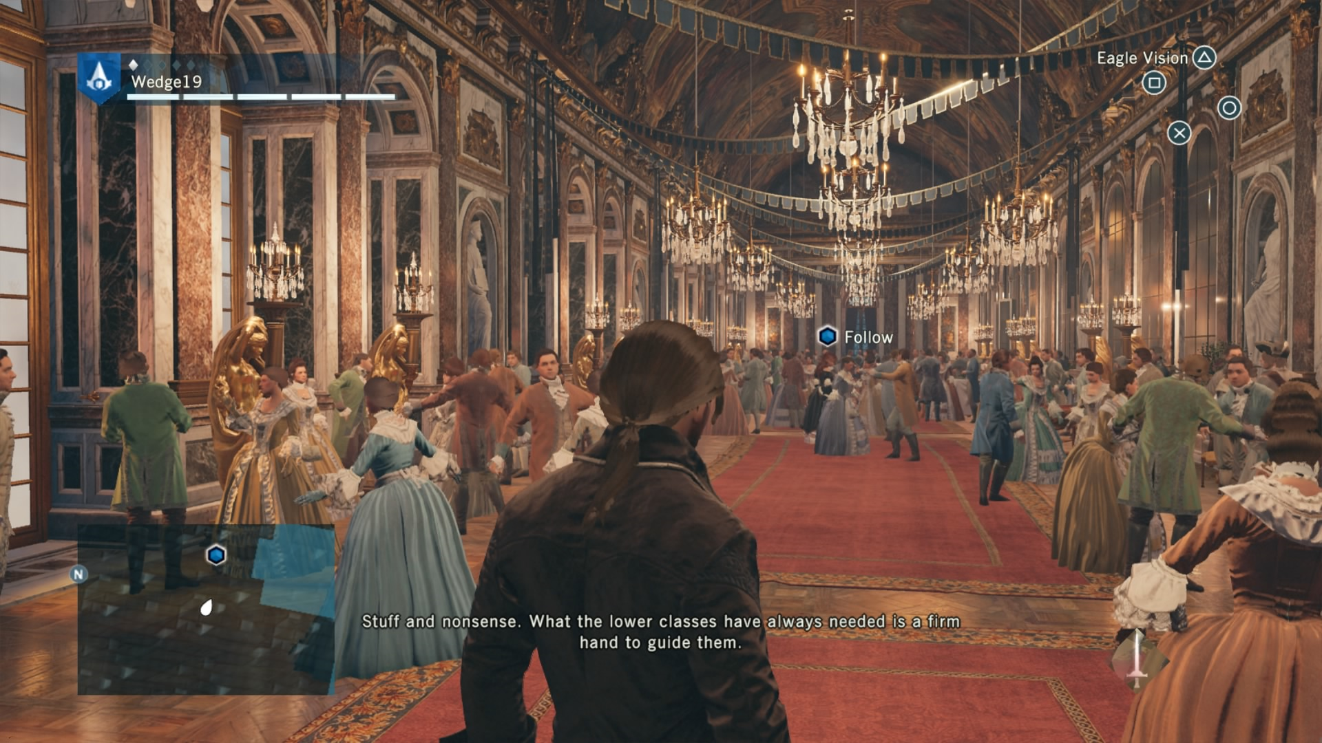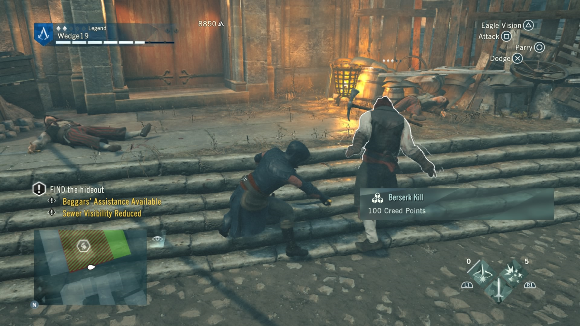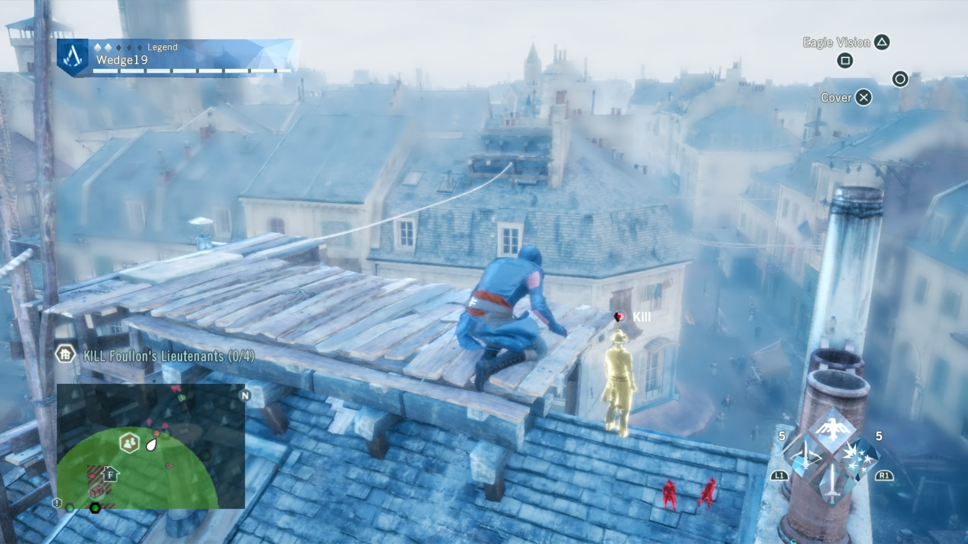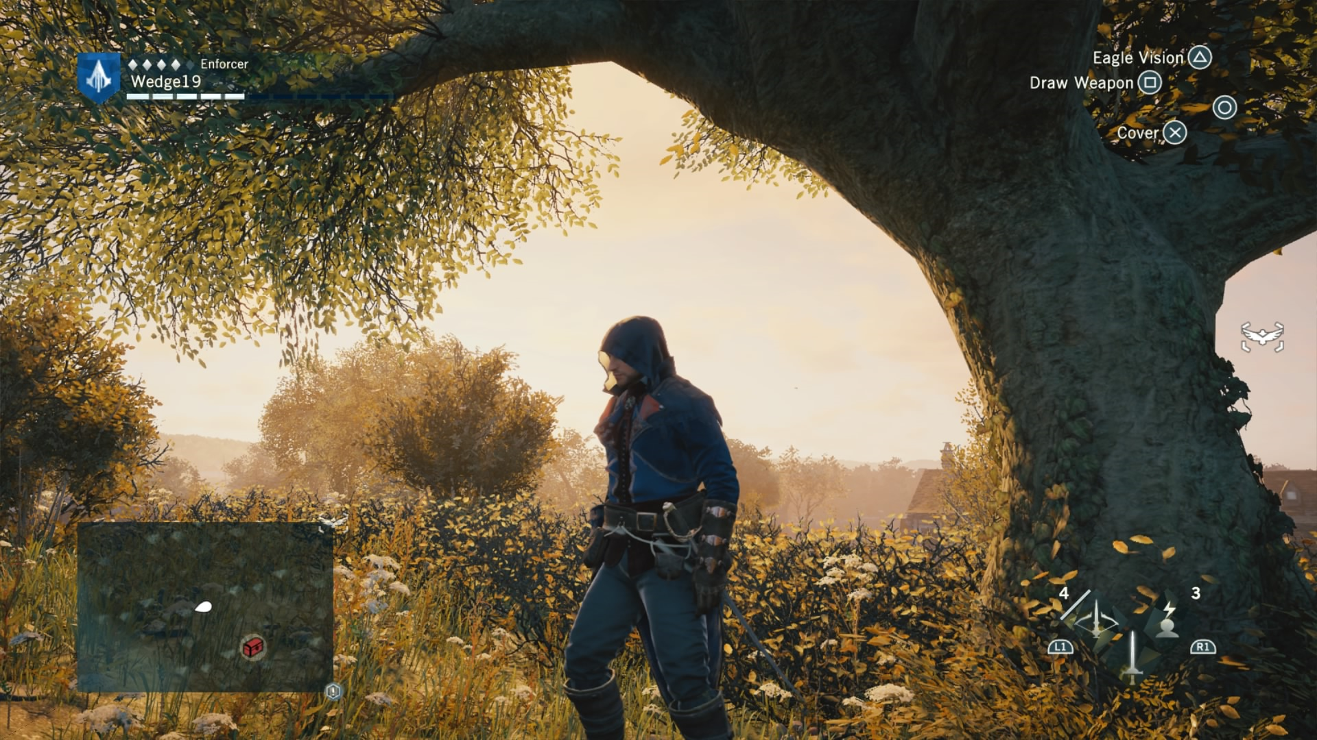 To combat this difficulty progression, Arno can be fully upgraded by buying or earning new gear, from weapons, to his hood, and even down to his pants. That’s right. Unity has customizable Assassin pants. Each of these pieces of gear give Arno a different look and different increasing stats, depending on if you prefer to focus on health for brute force, or stealth for the silent approach. If you are going for stealth, there is also a dedicated stealth button in addition to a cover system to allow Arno to bypass fights and take out enemies with a reticent hidden blade in the shadows. This seemingly basic addition drastically changes the way that Unity can be played, and allows for Arno to feel more like a true Assassin.