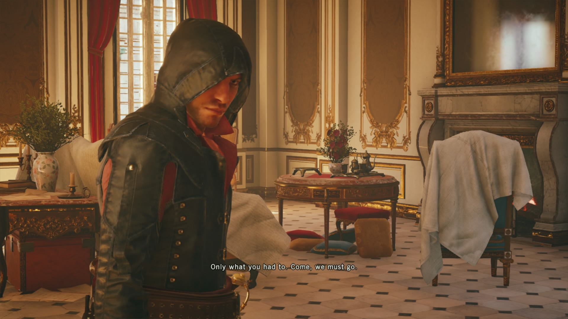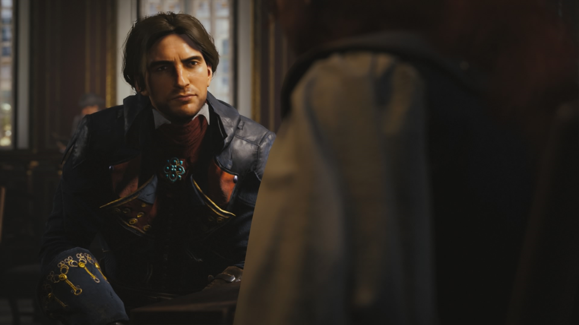 Unity doesn’t just play well, it looks beautiful too. The graphics have a stunning painted quality to them that may be attributed to the way that different materials react to the lighting. Velvet is lit like real velvet, leather like leather, and wood like wood. Stained glass windows and rooms gilded with gold reflect appropriately. Time of day and weather changes affect these as well. Each material reacts to the lighting uniquely, so the world seems much more vibrant. And then there is Elise’s hair. I can’t get over looking at her hair, which has an almost Pixar-like quality to it. Whoever at Ubisoft worked on her hair, excellent job, and keep it up.