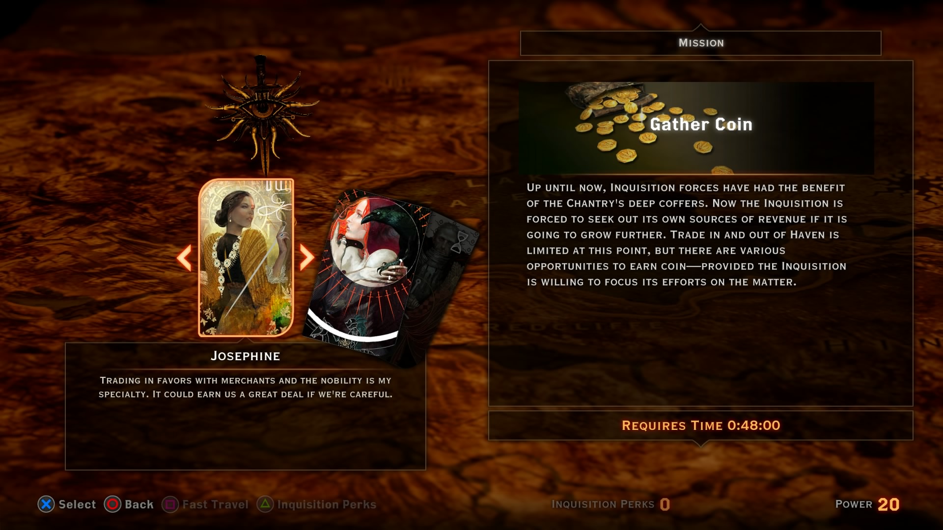 Besides gaining experience points, players also gain Inquisitor points by completing quests. These points allow you to unlock certain skills that will help the entire party. Some of these skills include being able to purchase better weapons, being able to gather more herbs, or being able to see more things on the mini-map. To select these Inquisitor skills, players have to go to the War Room.