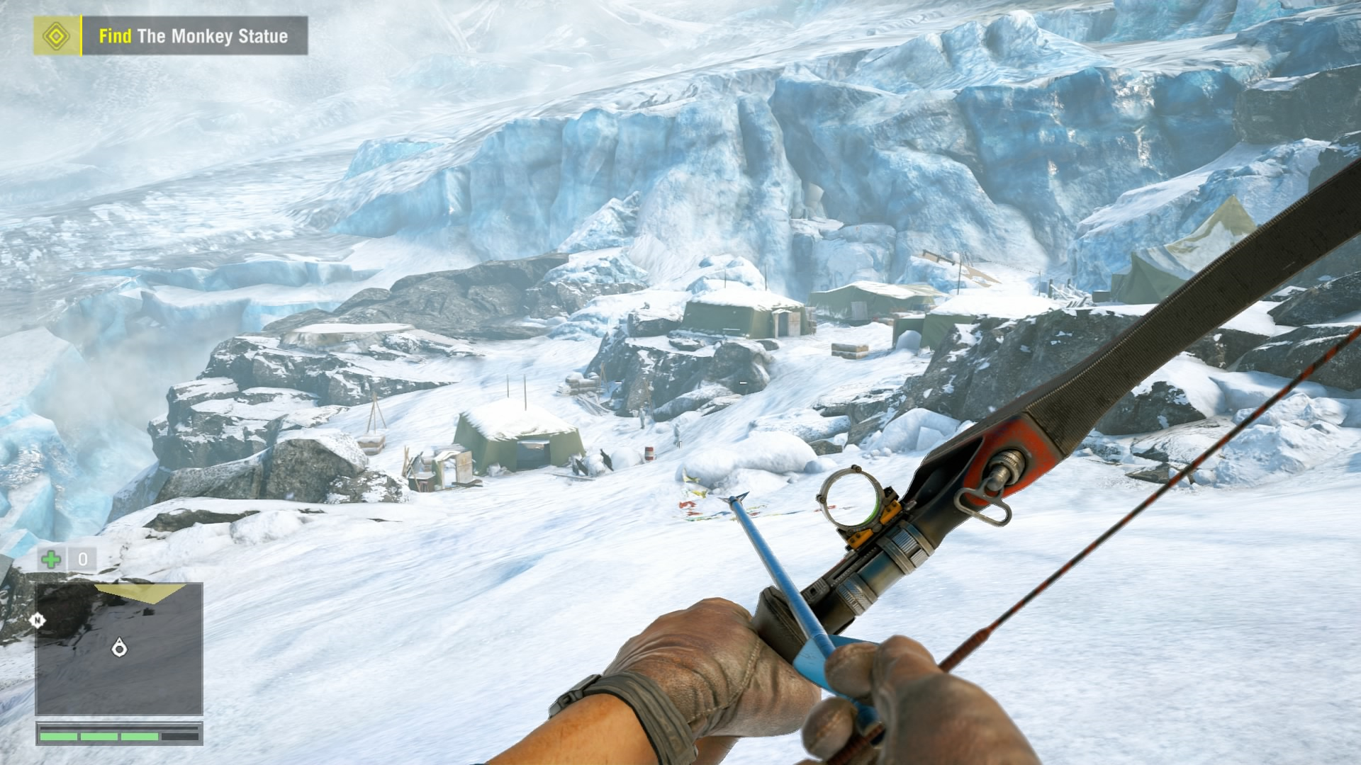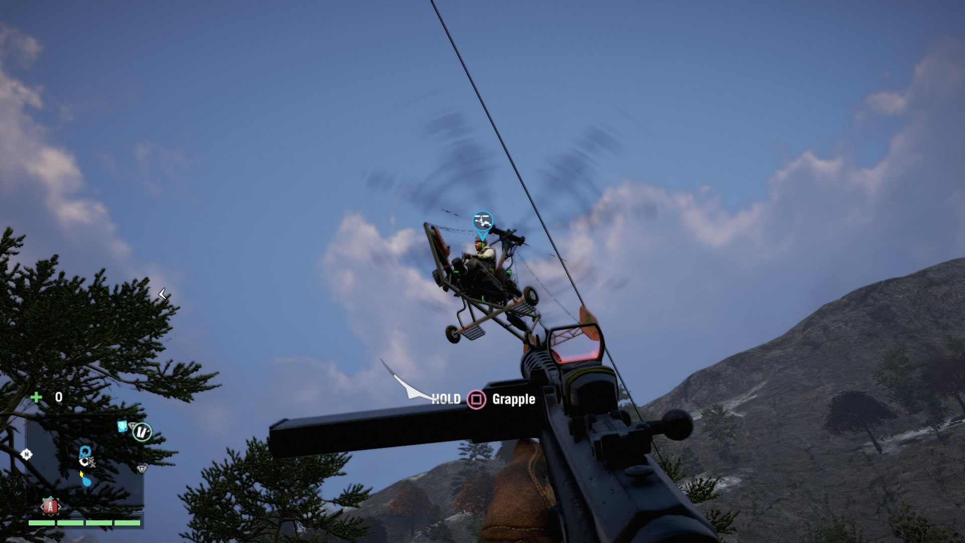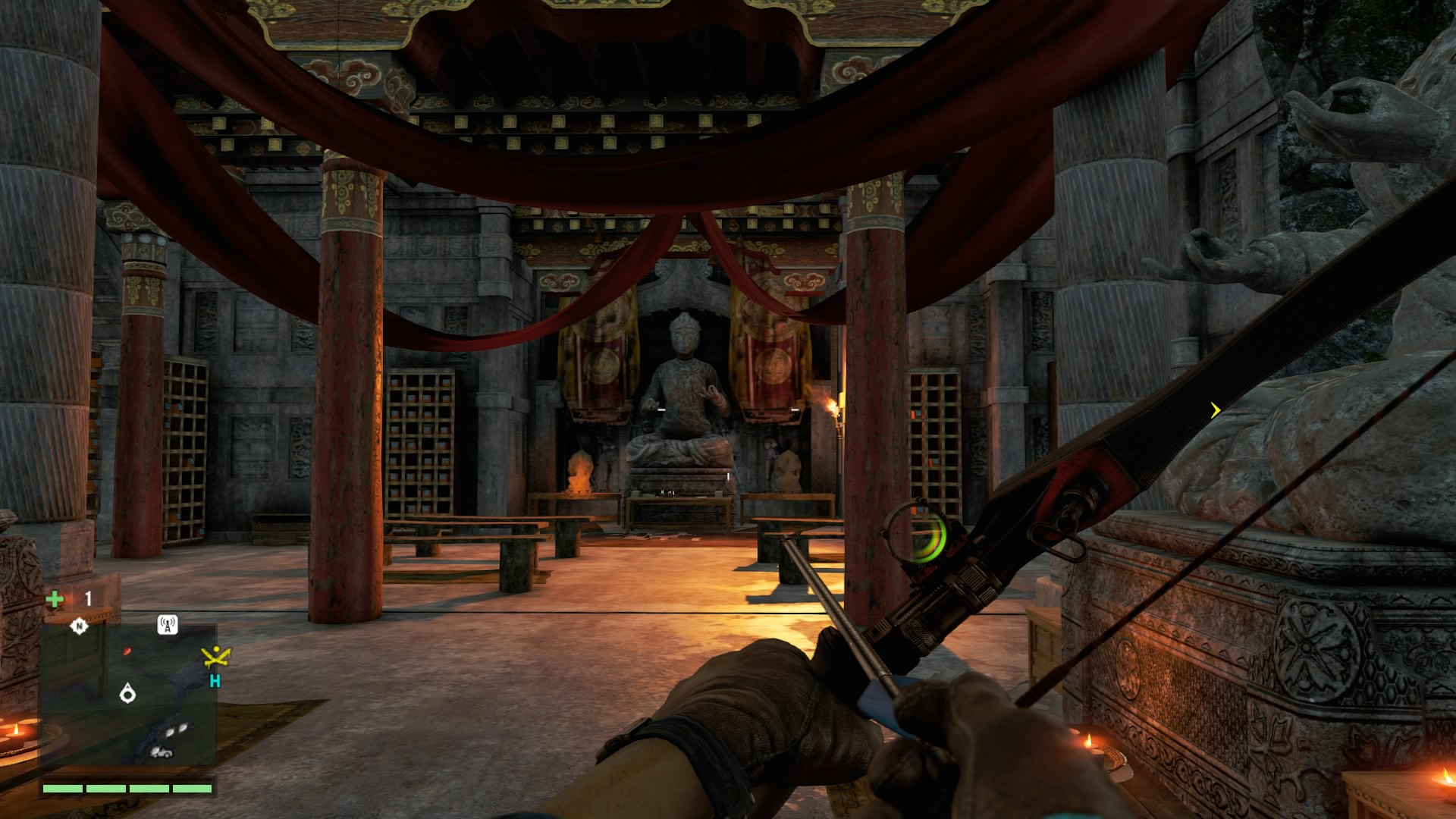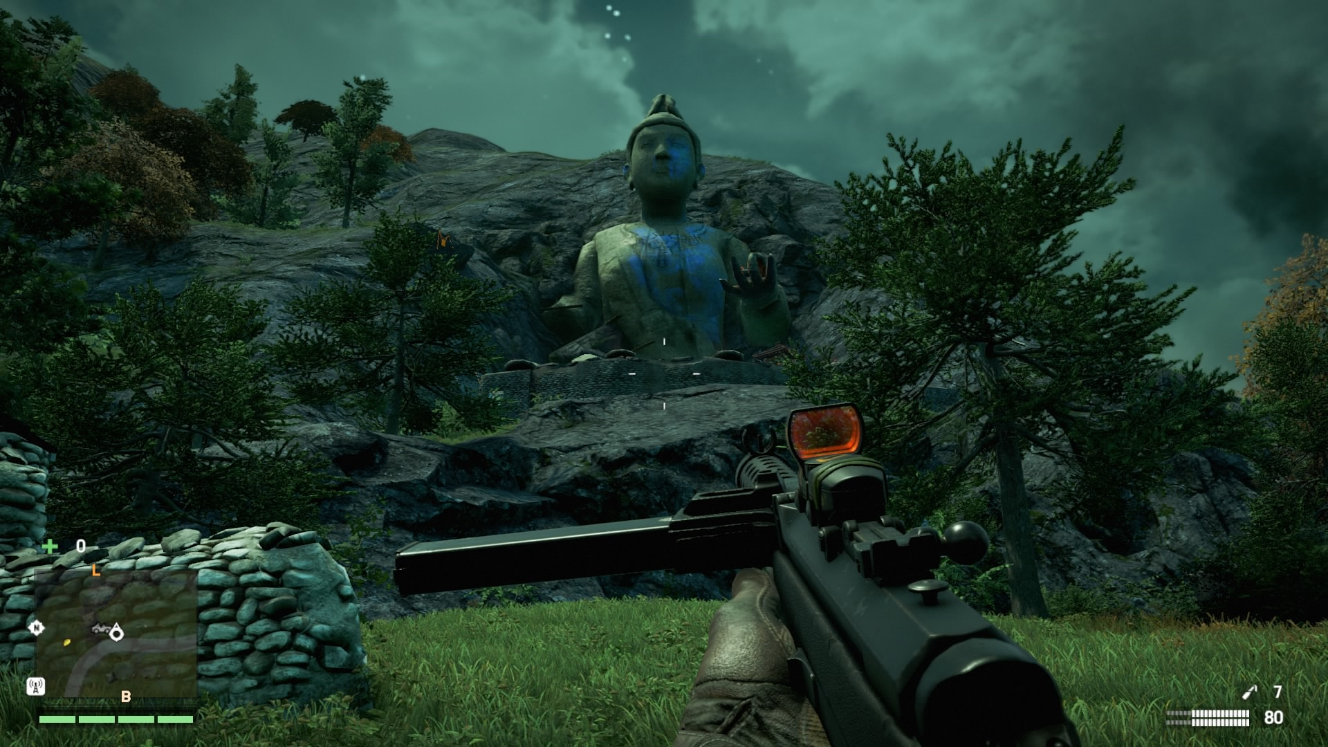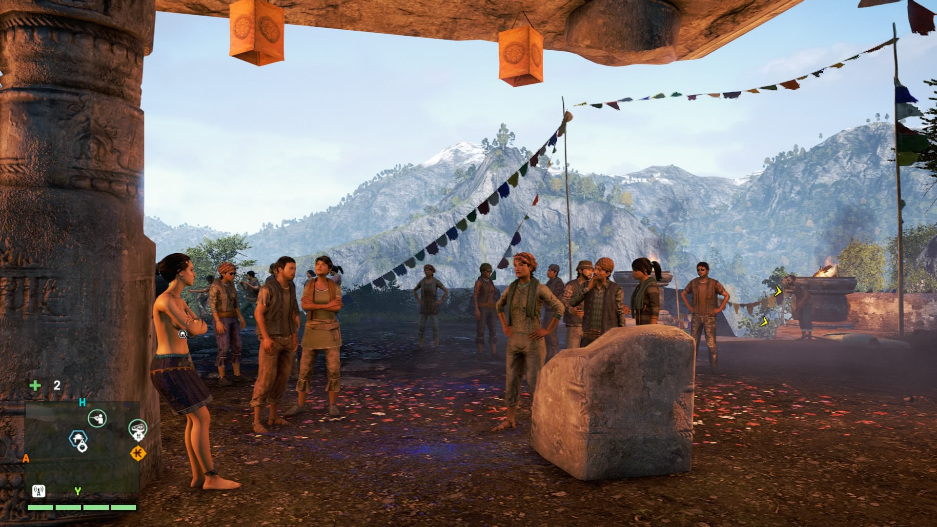 There is no denying that Kyrat is beautiful, and the vertically focused Himalayan setting is fun to explore. The culturally inspired atmosphere captures the Indian setting elegantly, and every nook and cranny holds something, whether it’s loot, collectibles, or another mission. My gaming ADD got the better of me in far too many cases and I found myself bounding over mountains in search of animals to hunt, hidden masks and propaganda to destroy, and outposts to take over. The ups and downs of Kyrat are easily traversed using grapples for climbing and the wingsuit for rapidly getting down from high places. There are also a variety of vehicles from ATVs to a small personal helicopter that assist in getting around the map. Great care is taken to make sure that getting from one place to another never feels too mundane or boring, and likewise isn’t too easy and quick. There’s a good balance here, which is imperative in open world games.