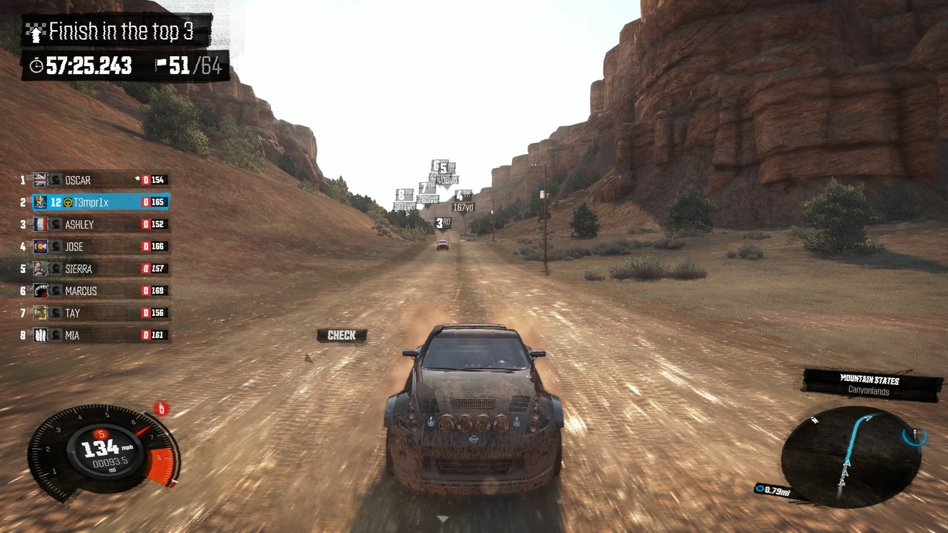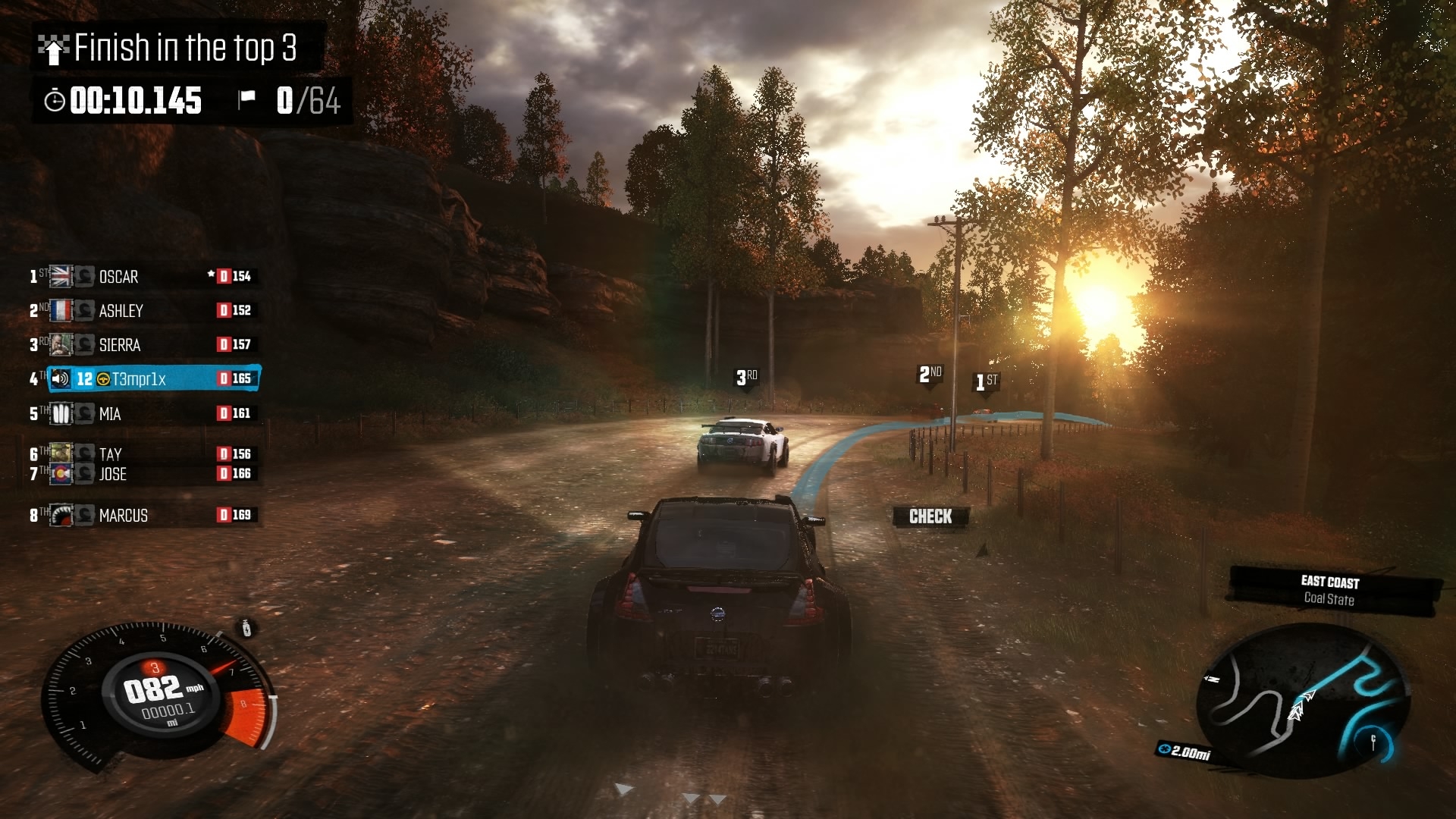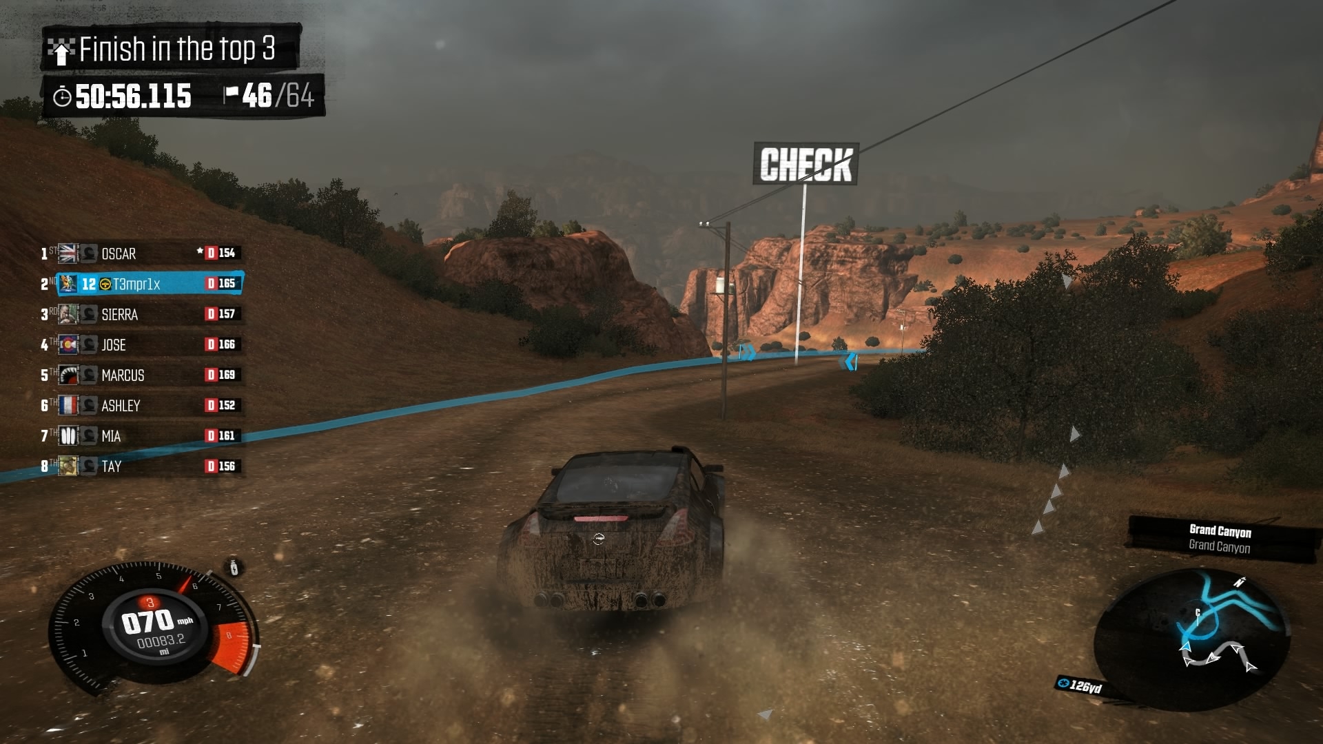 I have to say, the endurance events, dubbed Crew Missions, are actually a lot of fun. These are events unlocked about halfway through the campaign, and although their name may not imply it, they are long races – anywhere from one to two-and-a-half hours. They’re simple checkpoint races, but are so vast you don’t see the same location twice during the mission. In any given Crew Mission, you’ll race through the Grand Canyon, barrel down mountainous terrain, take a slog through the swamplands of The Bayou, and hit the nitrous through quaint suburbs. I did have to use turbo for basically all of the race to keep up in 2nd place, because my 2013 Nissan 370Z was not at a high enough Dirt Spec level to keep up a high top speed, and third place racer was breathing down my neck for the silver medal the whole time. This is a race event that you really have to devote your attention to, or else risk losing at least an hour of your time.