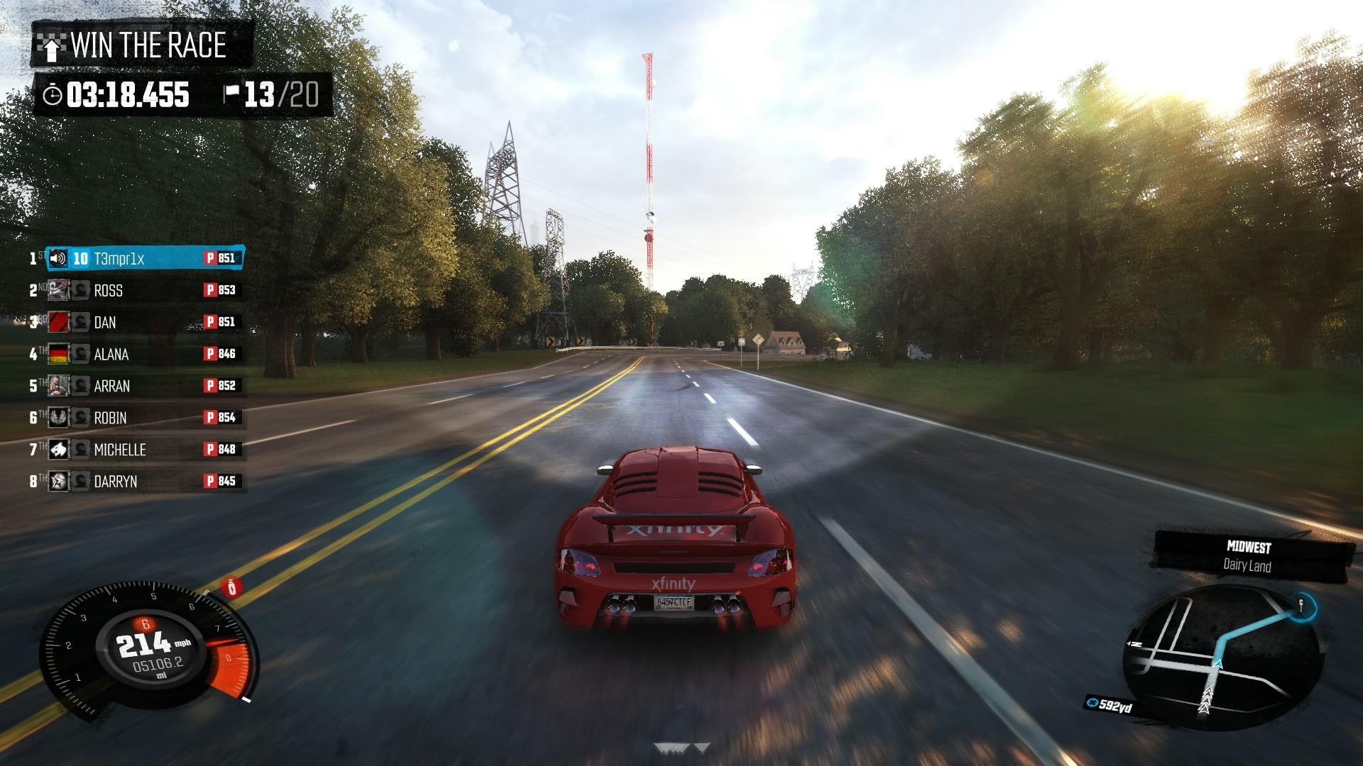 The entire country is streamed in, as once you start driving there are no loading screens for as long as you are on the road. It’s impressive from a technical standpoint, even more so when you see people milling about and going on with their lives, jumping out of the way if you barrel towards them, occasionally calling the cops who begin to be on the lookout when you drive recklessly. The Crew is presented in full 1080p, and the vehicles you race in are detailed well enough. This isn’t at the DrivClub or Gran Turismo level of detail, but vehicles do have a respectable level of detail graphically. Unfortunately, the sound of each vehicle is rather generic, and the horns are woefully inadequate.
