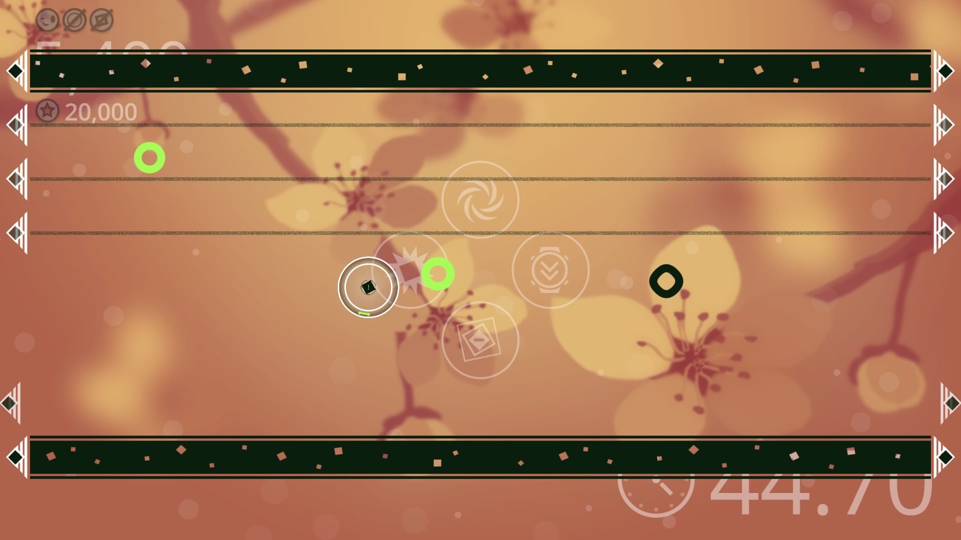 The core premise to Minutes is simple but there is a lot of depth that is presented as the game progresses. The circle can change size to grow larger and smaller which in turn, affects the score multiplier that’s active. This means that the player wants to be as large as possible when collecting points as to increase their score. Power-ups are also present and can make or break a run. These abilities can only be used one time during a level and do a variety of actions such as healing damage, deploying a protective shield, and triggering a blast that destroys enemies.