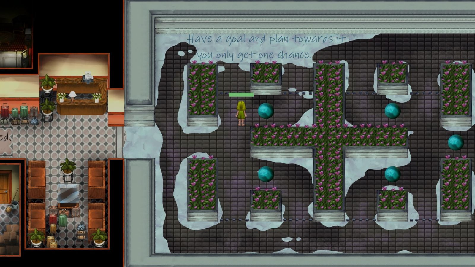 Focused sees you assume the role of the female character who prefers a more aggressive, yet still stealthy approach to reach her goal. She will throw rocks at the other people in order to move them out of their designated area so that you can pass by. The main focus of these two characters is to avoid people as much as possible, which is in tune with the distant and focused personality types, as these are typically associated with introverts that prefer to keep to themselves.