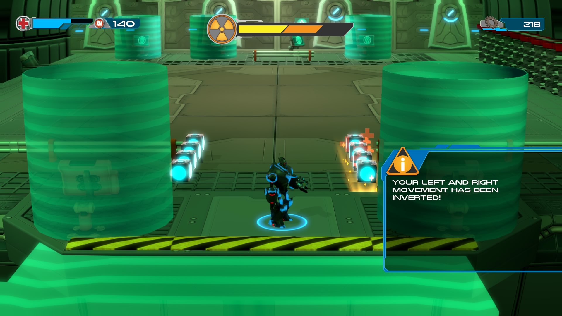You play as an unlikely hero, the titular Yorbie, an enslaved robot, in an attempt to save your homeworld from the clutches of the evil Dr. Zox. That’s really all there is to the story. Much like the rest of the game as you’ll see, it’s pretty simple. There is a confusing ending that doesn’t seem to change, and Yorbie (and unnamed accomplices) is a catchphrase-spouting hunk of metal who is actually pretty weak. Oh, and his catchphrases? Poetry such as “Knock knock, bitches,” “Ooh, I like it rough,” and “Check out those circuits!” I’m not sure what kind of persona they were going for here, because it ends up leaving Yorbie pretty shallow in character.