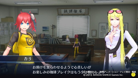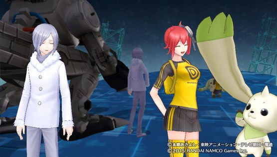 Digimon games always have these great systems but fit in one really weird flaw, and in Cyber Sleuth, it’s the story telling. Bandai Namco has injected Digimon with a little too much melodrama early on, a little too much sex appeal, and this weird version of stage-style story telling in which characters are standing right in front of themselves. Look: