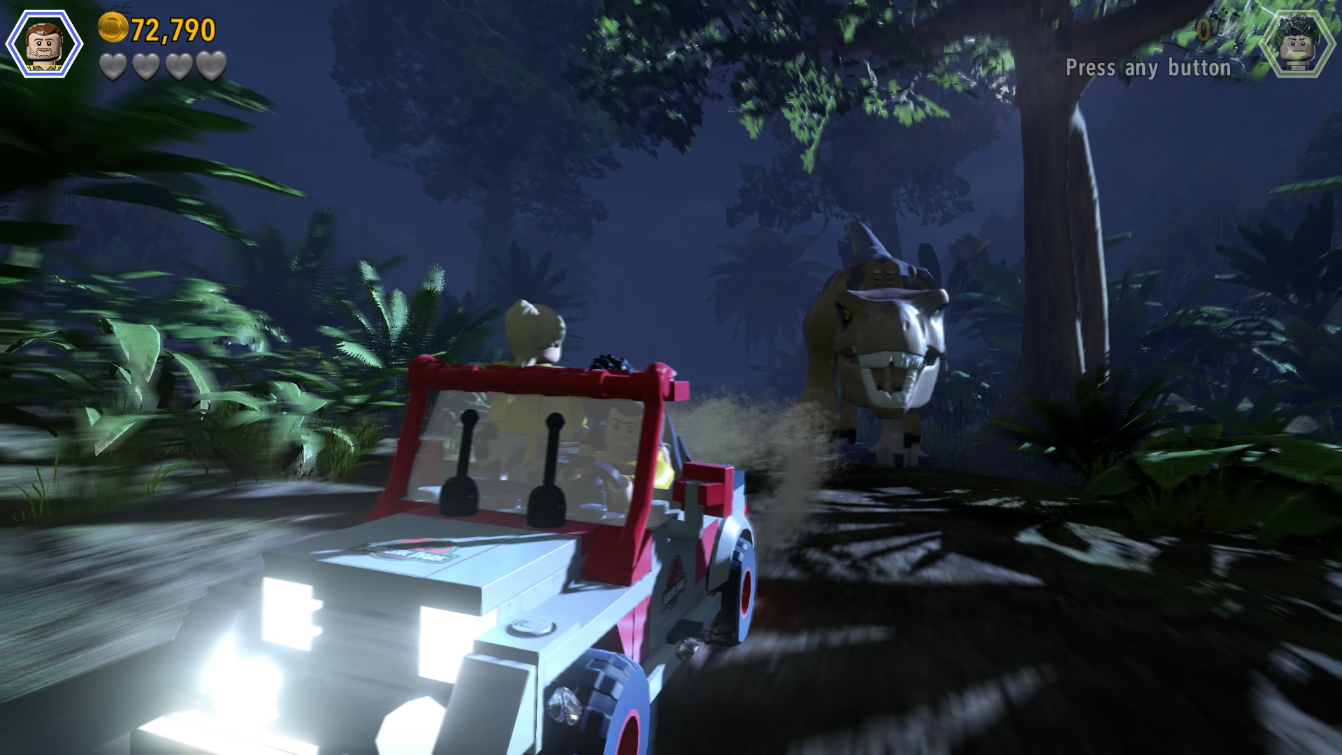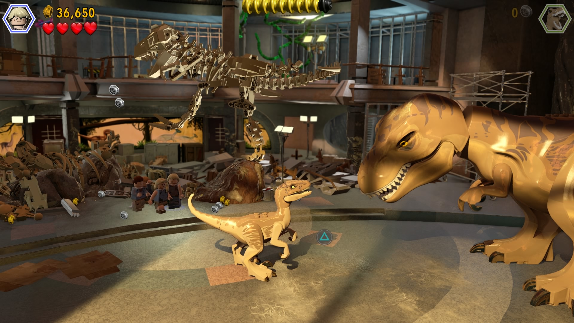 I did notice, however, that playing as a dinosaur seems to bring out more bugs than usual. It’s no secret that LEGO games are often a little buggy, but LEGO Jurassic World seems to have more issues than the average LEGO title. Maybe it’s because the dinosaurs are much bigger than the normal characters, but I noticed the game had a really hard time with collision detection while I was running around as a dino. I often went through fences, walls, trees, and other things that should have stopped me in my tracks. Twice while playing as a triceratops, I fell through the ground and had to restart the game. The game even has a bit of trouble with collision detection while playing as some of the normal LEGO characters, as more than a few times I got completely stuck in an area and had to restart the level. Hopefully, a patch will come along and fix these bugs, but as for right now, they are fairly frequent.