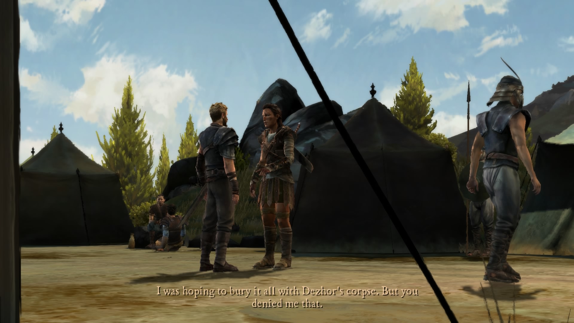 Something that did not work very well in this episode, however, were some of the character animations. At two different points, I noticed that characters who were supposed to be crying (they were making sobbing, sniffling noises and everything) had completely blank and stoney faces. While normally this wouldn’t bother me all that much, in a story oriented game like GoT, it completely takes away from the emotions the player is supposed to feel, and pushes the player away from the story.