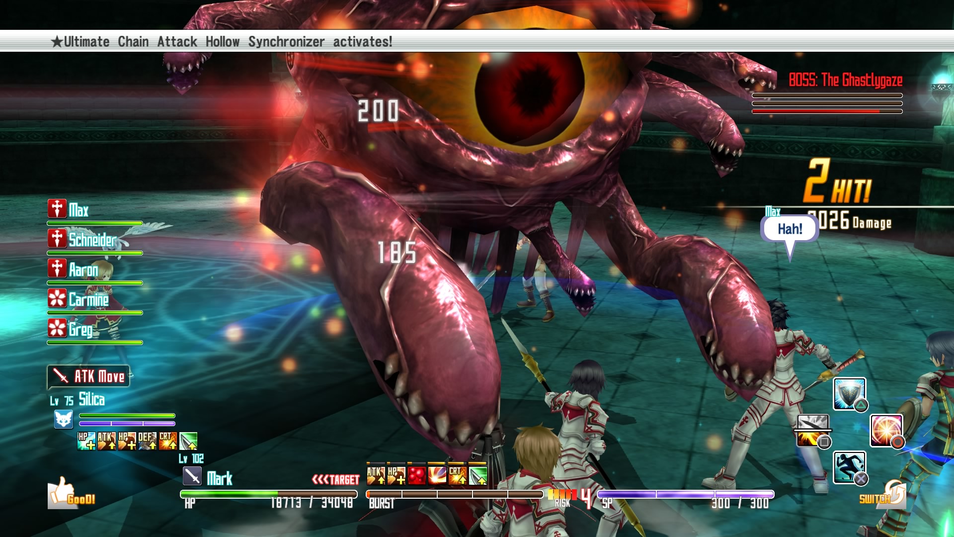Unlike normal combat, boss battles involve a large party of NPC characters (joined by Kirito) as a large, singular creature is attacked. Instead of just having to look out for the one companion, players now are charged with keeping an eye on quite a few companions as they all struggle to kill the boss. This makes the battle feel chaotic, as well as makes the boss actually feel like the powerful, over-the-top powerful being that it is supposed to be.