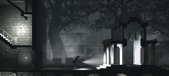 Calvino Noir presents itself as a game that might fully imbue noire into its core. It’s a methodically-paced stealth game, where most of the time you have to be the lone figure standing in the darkness, the bright cone of a street lamp in the background tracing your figure. You wait, studying the guard patterns, their flashlights scanning up and down stairways and rooms. Then you creep towards the back of one of the armed men, a meter appears and fills with red, he flips around, and shoots. You die, your body disappears, the screen flashes and you’re back in the darkness, waiting for another moment to strike. After the twelfth or thirteenth death, the recreated noire look of Calvino Noir is a prison, sucked of its patience and rhythm.