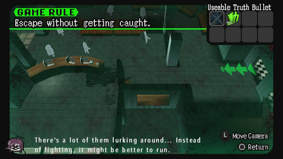 Certain strategies are required to take down groups of robotic Monokumas, and there’s something so satisfying about changing to a Move bullet to ram an electric car into them, or using a Dance bullet on Alarm Monokuma to draw all nearby robots to him, and then hitting the weak point on a Bomb Monokuma to take them all out in one fatal blast. The gameplay is broken up by challenge rooms that require you to figure out these combinations and tactics to move forward, and as the game progresses and more options open up, the combinations can get even crazier.